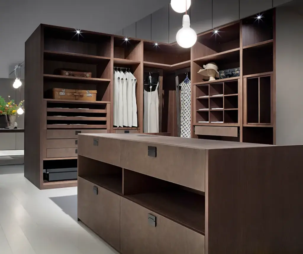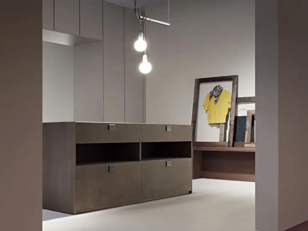 Maui - Double-side island unit which can furnish the walk-in closet area. It can be completely personalized and realized according to the requests of the client: we decide the dimension according to the available space, the cumbers of the drawers, eventually it can be completed also with doors, some parts can be covered with leather oir hard leather, the top can be also in transparent glass.