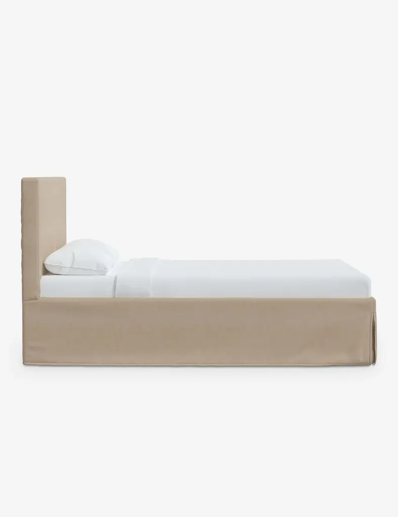 Elegant in its simplicity, this bed frame features clean lines and a tall headboard to add an outsized presence to your room. The tailored slipcover comes in a full range of saturated tones and easy-clean fabrics that can suit your preference for an always-fresh bedroom look. We love this slipcover bed for inspiring a signature touch with practical appeal.