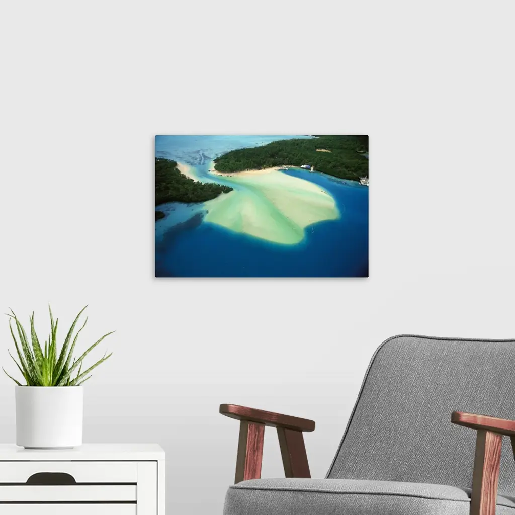 Mauritius, East Coast near Ile aux Cerfs, aerial view wall art for home and office decor. Discover canvas art prints, photos, mural, big canvas art and framed wall art in GreatBigCanvas.com's varied collections.