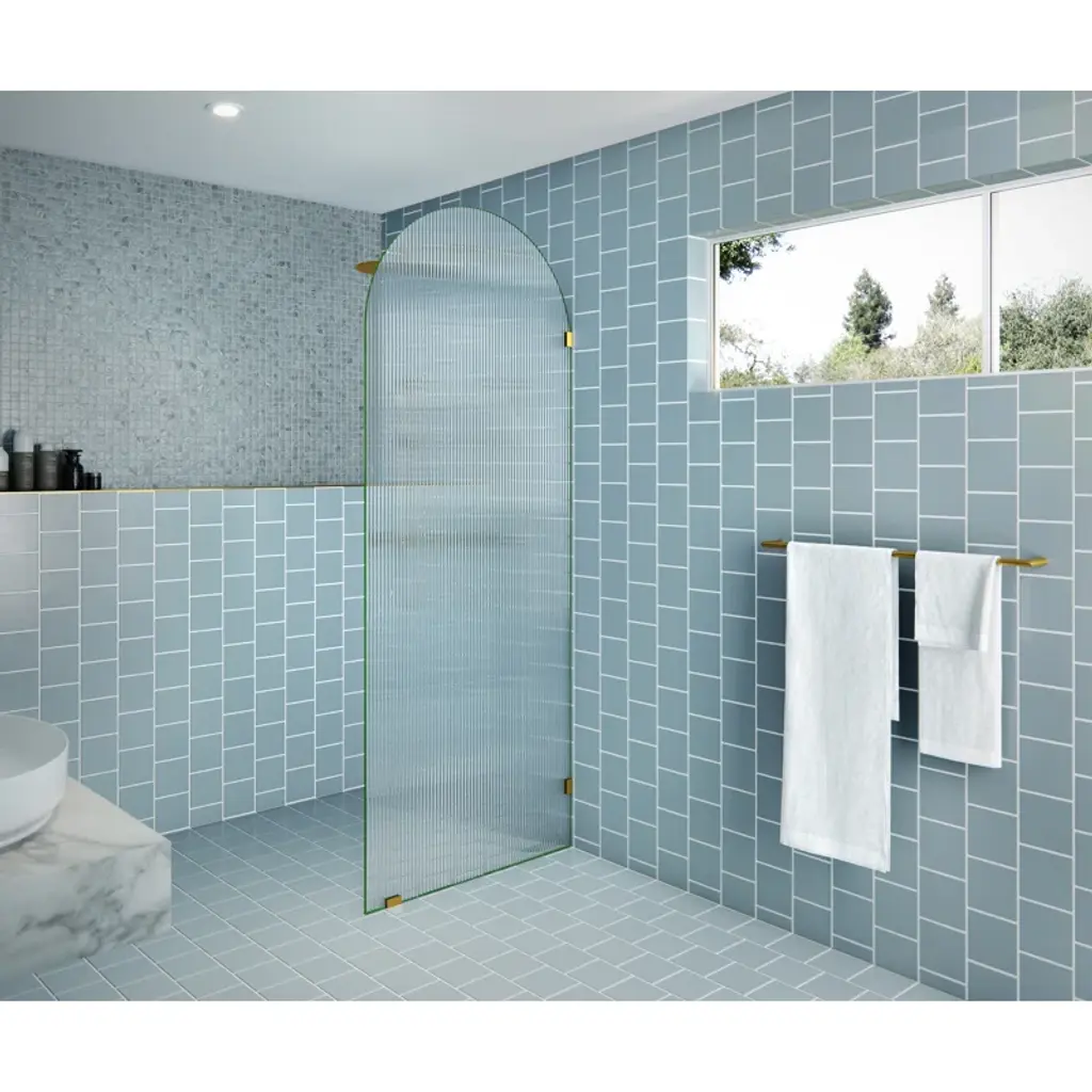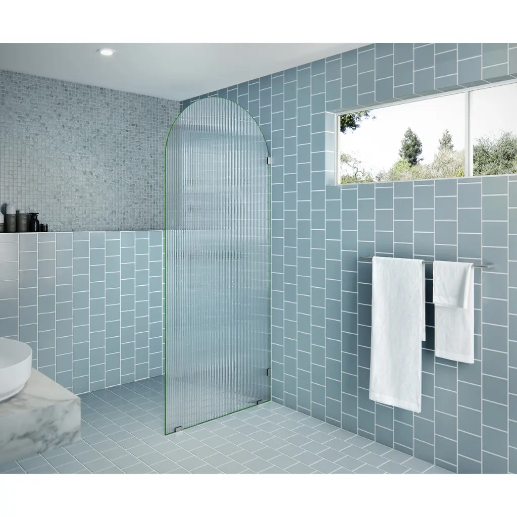 Soften the light and the edges in your bathroom with our stunning Maven arch textured frameless glass shower panels. Each 3/8" tempered glass panel comes in a standard 86.75" height and is treated with EnduroShield coating, which aids in repelling water and soap residue. In addition, our superior quality solid brass hardware is available in a variety of color finishes to suit any bathroom. With an extensive range of fixed shower panel sizes available, the Maven shower enclosure by Glass Warehouse adds both a touch of luxury and a timeless aesthetic to your bathroom. At the same time, the extra height of this premium design brings a high-end, custom-made feel.
