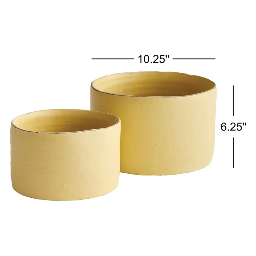 With a crackled glaze, uneven texture and basic form, this set of cachepots is simple and raw. In a refreshing buttercup yellow, like a freshly made ceramic piece direct from the hands of the artist.