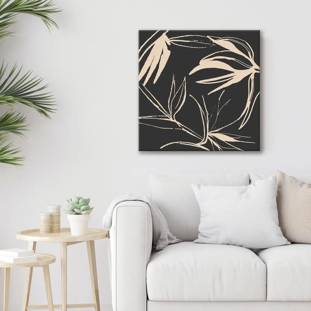 A serene choice of wall decor for your home, this canvas wall art has a refined palette of muted black and beige. Designed with a leaf outline by the modern-meets-timeless brand Max & E, it has a calming visual effect that brings an element of nature to any hallway, dining space or home office. The excess materials created in the handcrafting of this artwork are reused and recycled as art supplies for a Tennessee nonprofit called Minor Masters.