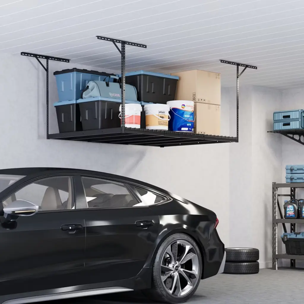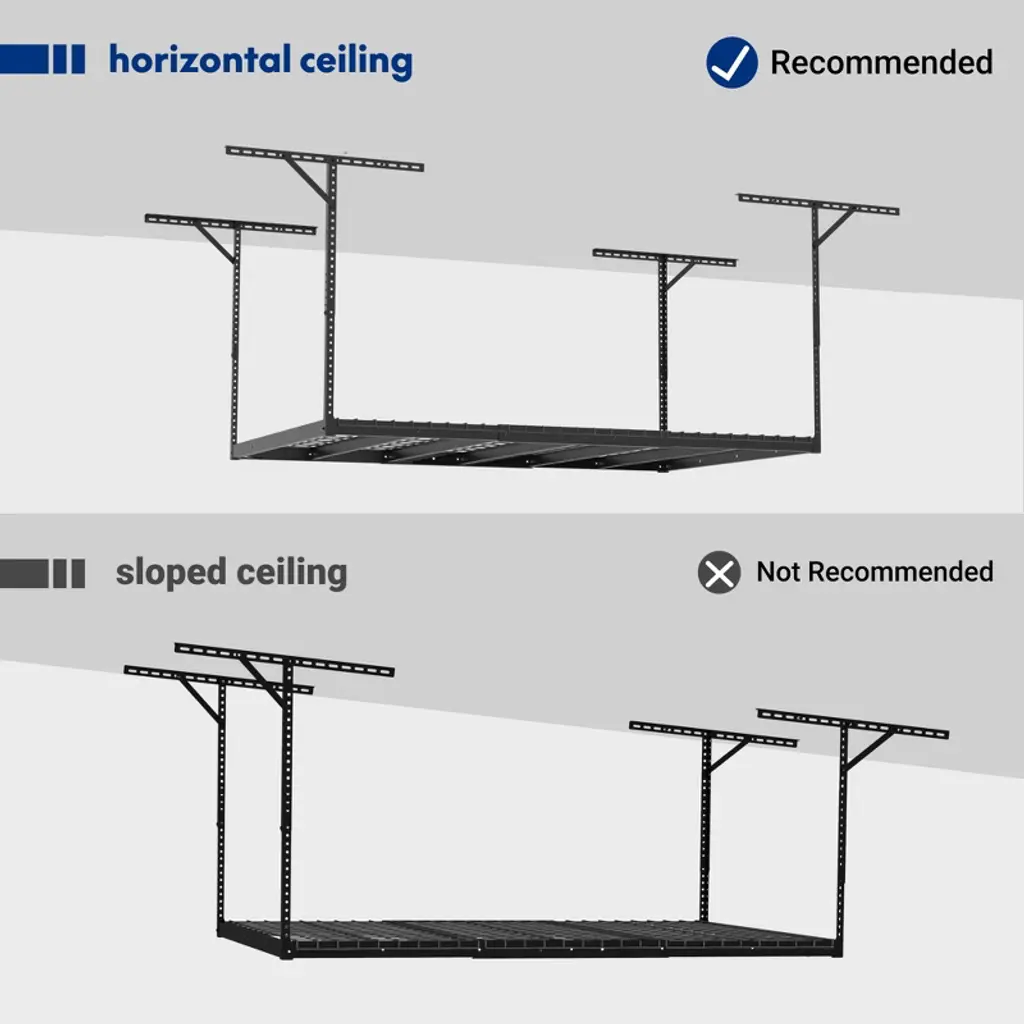 Max Series 48 In. W X 72 In. D X 22-40 In. H Black Heavy Duty Ceiling Mounted Overhead Garage Storage Rack