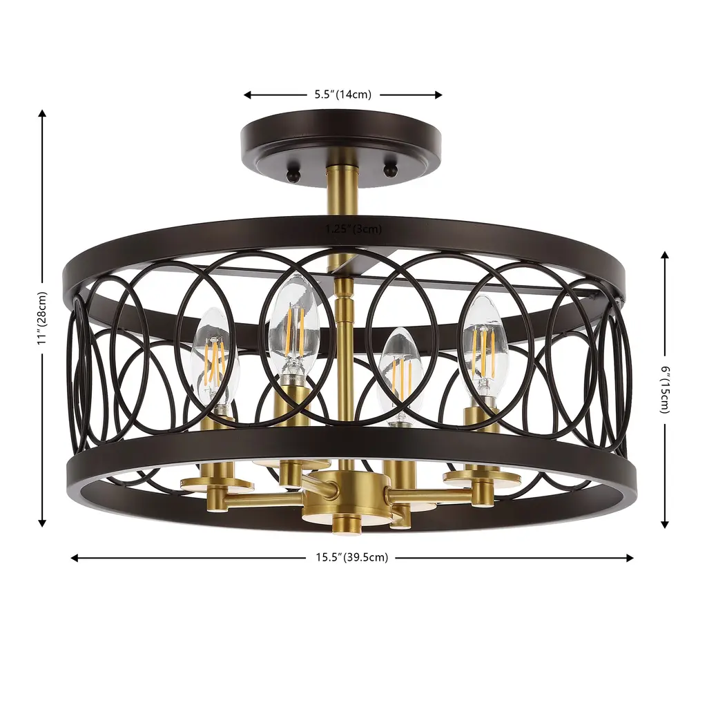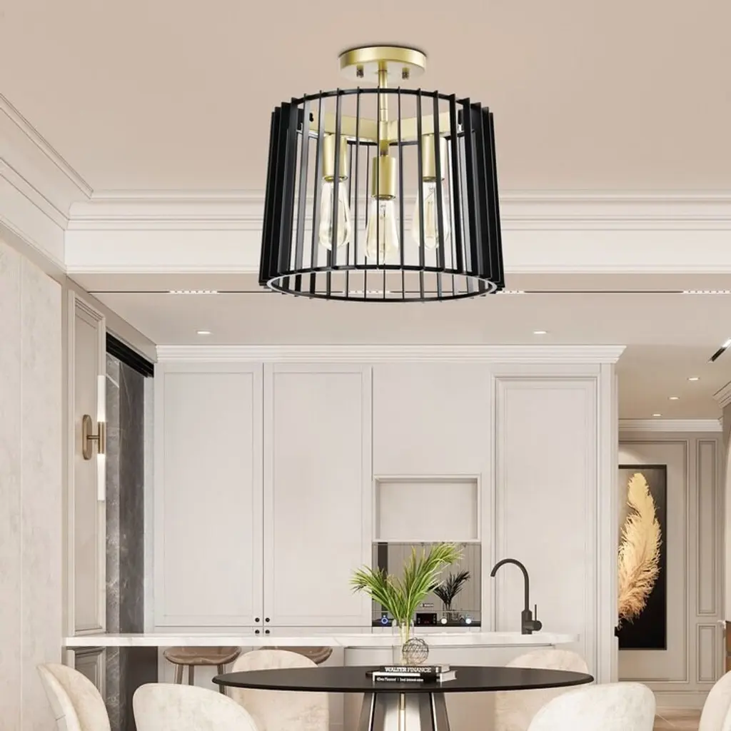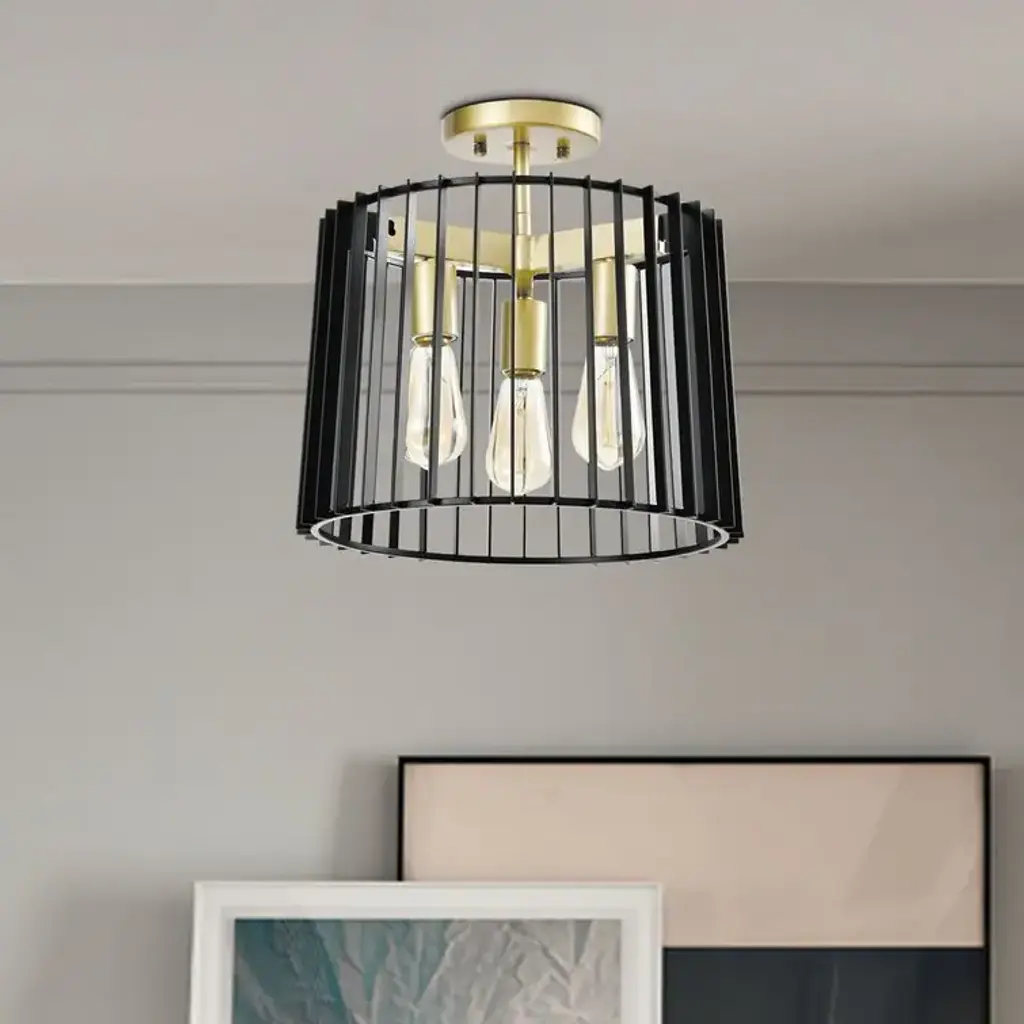 Maxax 3 - Lights Semi Flush Mount - N/a - Black&gold