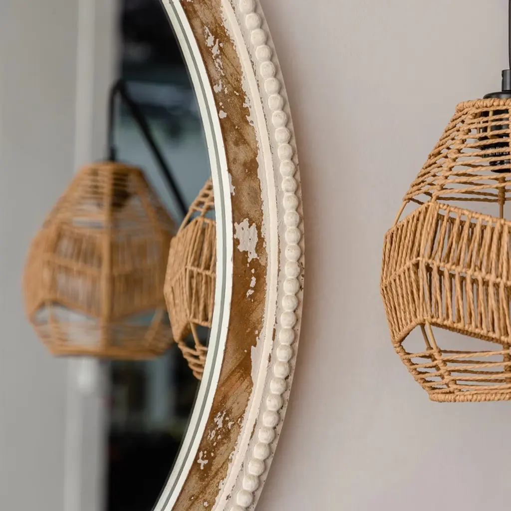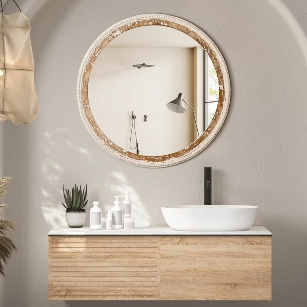 Fashionable and minimalist design: Simple flat wooden frame, natural surface treatment. Versatile appearance: Suitable for modern, country and farmhouse interior decorations. Clear reflective glass: High-quality glass, with clear reflection without distortion. Durable and sturdy: Solid wooden frame, long-lasting. Easy installation: Comes with installation hardware, convenient for wall installation. This retro wooden mirror is suitable for installation in various scenarios such as dressing tables, entrance halls, and washrooms, bringing warmth and a retro atmosphere to a corner of your room.