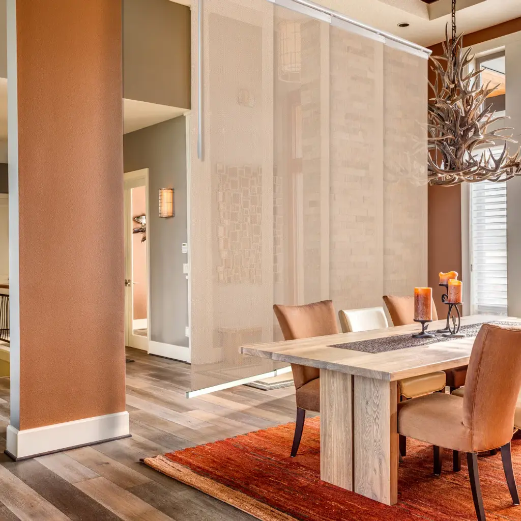 Central Design Products is pleased to introduce a new innovative panel track that offers easy 2-way installation, adding an alluring style and refined touch to your home decor. The single rail design of the track is sleek, compact, and reduces the overall footprint and weight of the installation, eliminating bulky, intrusive window treatments. Adjusting the panel height is a breeze � simply trim the panel, re-attach the liner, and install the panel weight. Detailed instructions are included.The panel track also features a patented slider design, made with aluminum and fitted with bearings that allow for durable and smooth operation. The sliders are stacked closer together than conventional panel tracks, reducing light bleed coming from the gaps between panels. This track has endless uses from dividing rooms, garages, offices, and closets to decorating windows and patios. Available in larger sizes including 8, 10, and 12 panels. Extends from 48-88� wide. Each panel measures 23.5" wide and 116" tall, with a total installation height of 118.5" (includes the 2.5" rail track). The track can be wall or ceiling mounted. The panels can stack on the left or the right. The clearance from the wall is extendable from 1.25� to 3.25� and projection from the wall is extendable from 3� to 4.25�. Maxene panel is made from 75% Vinyl 25% Polyester, with a light filtering shade that blocks 40% of the light.
