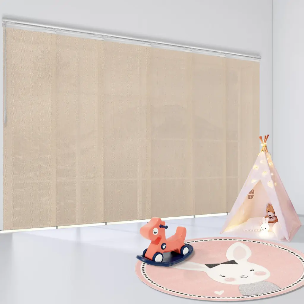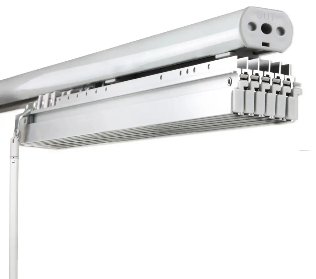 Central Design Products is pleased to introduce a new innovative panel track that offers easy 2-way installation, adding an alluring style and refined touch to your home decor. The single rail design of the track is sleek, compact, and reduces the overall footprint and weight of the installation, eliminating bulky, intrusive window treatments. Adjusting the panel height is a breeze � simply trim the panel, re-attach the liner, and install the panel weight. Detailed instructions are included.The panel track also features a patented slider design, made with aluminum and fitted with bearings that allow for durable and smooth operation. The sliders are stacked closer together than conventional panel tracks, reducing light bleed coming from the gaps between panels. This track has endless uses from dividing rooms, garages, offices, and closets to decorating windows and patios. Available in larger sizes including 8, 10, and 12 panels. Extends from 98-130� wide. Each panel measures 23.5" wide and 91.5" tall, with a total installation height of 94" (includes the 2.5" rail track). The track can be wall or ceiling mounted. The panels can stack on the left or the right. The clearance from the wall is extendable from 1.25� to 3.25� and projection from the wall is extendable from 3� to 4.25�. Maxene panel is made from 75% Vinyl 25% Polyester, with a light filtering shade that blocks 40% of the light.