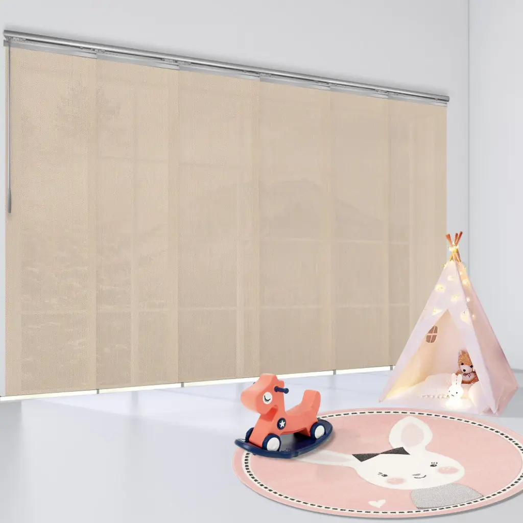 Central Design Products is pleased to introduce a new innovative panel track that offers easy 2-way installation, adding an alluring style and refined touch to your home decor. The single rail design of the track is sleek, compact, and reduces the overall footprint and weight of the installation, eliminating bulky, intrusive window treatments. Adjusting the panel height is a breeze � simply trim the panel, re-attach the liner, and install the panel weight. Detailed instructions are included.The panel track also features a patented slider design, made with aluminum and fitted with bearings that allow for durable and smooth operation. The sliders are stacked closer together than conventional panel tracks, reducing light bleed coming from the gaps between panels. This track has endless uses from dividing rooms, garages, offices, and closets to decorating windows and patios. Available in larger sizes including 8, 10, and 12 panels. Extends from 98-130� wide. Each panel measures 23.5" wide and 91.5" tall, with a total installation height of 94" (includes the 2.5" rail track). The track can be wall or ceiling mounted. The panels can stack on the left or the right. The clearance from the wall is extendable from 1.25� to 3.25� and projection from the wall is extendable from 3� to 4.25�. Maxene panel is made from 75% Vinyl 25% Polyester, with a light filtering shade that blocks 40% of the light.