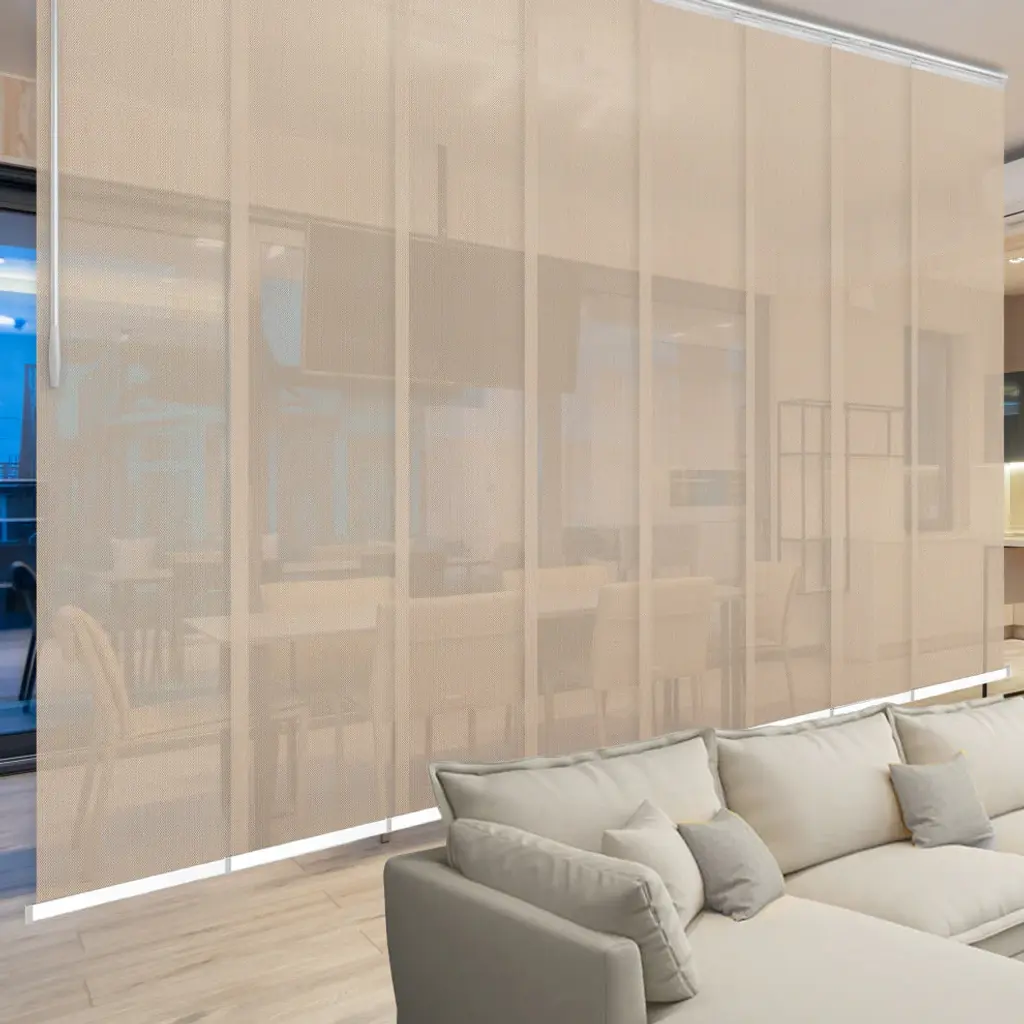 Central Design Products is pleased to introduce a new innovative panel track that offers easy 2-way installation, adding an alluring style and refined touch to your home decor. The double rail design of the track is sleek, compact, and reduces the overall footprint and weight of the installation, eliminating bulky, intrusive window treatments. Adjusting the panel height is a breeze � simply trim the panel, re-attach the liner, and install the panel weight. Detailed instructions are included.The panel track also features a patented slider design, made with aluminum and fitted with bearings that allow for durable and smooth operation. The sliders are stacked closer together than conventional panel tracks, reducing light bleed coming from the gaps between panels. This track has endless uses from dividing rooms, garages, offices, and closets to decorating windows and patios. Available in smaller sizes including 3, 4, 5, 6, and 7 panels. Extends from 130-175� wide. Each panel measures 23.5" wide and 116" tall, with a total installation height of 118.5" (includes the 2.5" rail track). The track can be wall or ceiling mounted. The panels can stack on the left or the right. The clearance from the wall is extendable from 1.25� to 3.25� and projection from the wall is extendable from 3� to 4.25�. Maxene panel is made from 75% Vinyl 25% Polyester, with a light filtering shade that blocks 40% of the light.