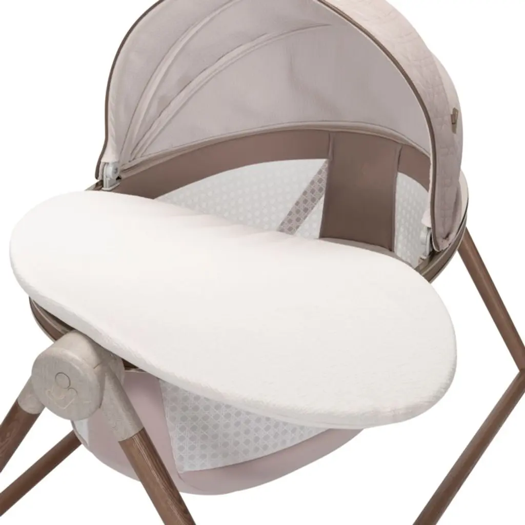 The Maxi-Cosi® Sibia Bassinet combines timeless design with modern technology. It gives baby a blissful spot for both naptime and bedtimeit's even sized at the perfect height to keep them bedside and within arm's reach. And the cutting-edge CryAssist audio monitor means your baby is always within earshot. This technology uses AI to translate baby's cries, allowing you to respond to their needs quickly. The bassinet also lets you set the right scene for wind-down and wake-up, calming little ones with natural motions, soothing sounds, two-way talk and more. Need to make a move? The legs fold and unfold for easy transport.Part of the Maxi-Cosi Kindred Collection, combining timeless design and premium materials for both comfort and style.