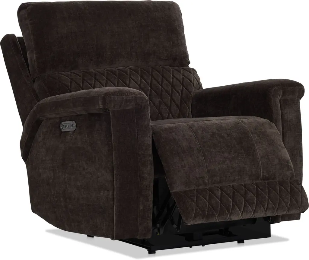 Decked out with tech magic—the Maxie Dual-Power Recliner takes lounging to the next level. With soft fabric, sink-in seating and stylish diamond stitch detailing.