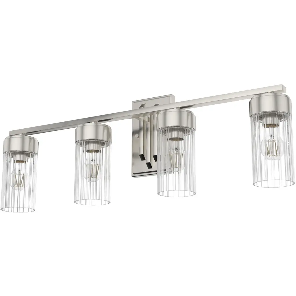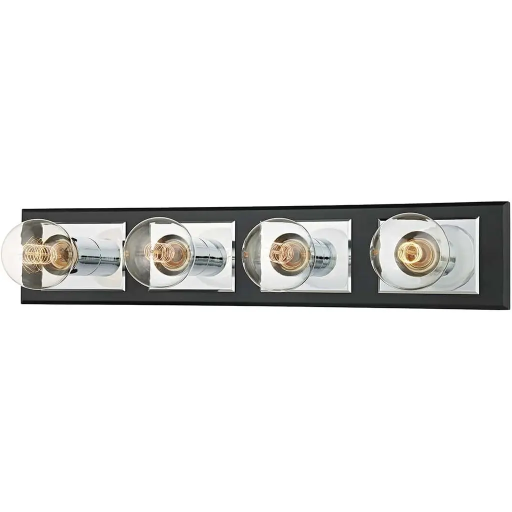 This four light vanity is part of the Essentials collection and has a polished chrome finish. It is damp rated.When you need necessary lighting for your home, think Essential first. Essential collection''s selection of traditional, transitional and contemporary lighting focuses on simple design to brighten up any room. Fixtures come in choice of polished chrome or polished brass to meet your specific design requirements.Illumination-Bulb Type: Incandescent-Socket Type: Medium-Number of bulbs: 4-Max Wattage: 60-Bulb(s) Included: No-Dimmer: Standard-Bulb Hours: 2500-Color Temperature: 2700 Kelvin-Lumens: 2688Style-Finish: Polished Chrome-Collection: Essentials - 445x-Back Plate: 4" x 23.25"-Material: IronAdditional Info-Rating: Damp Rated/ADA Compliant-Voltage: 120-Weight: 1.76 lbs.-Warranty: 1 year-Damp Rated