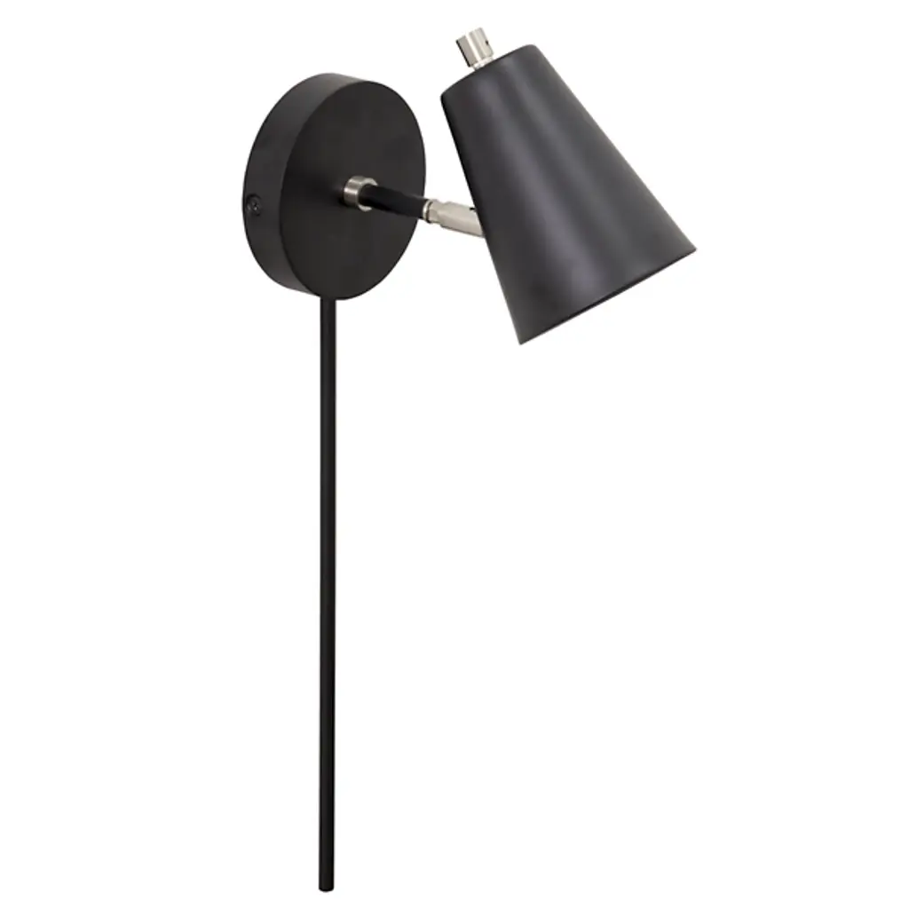 Direct the light exactly where you want it using the articulated arms and metal shades of the Library series. At the backplate, the arm pivots left/right and up/down to direct the light. Additional articulated arms angle the shade or extend/contract the distance of the light source from the wall. Available in Polished Nickel, Black and Heritage Brass finishes, the Library collection evokes industrial era classicism perfect for use as a task light or accent light. Complimentary table and floor lamps complete the collection. Mounting Direction: Directional Back Plate Height: 5.00 Back Plate Width: 5.00 Shade Dimensions: 6.25