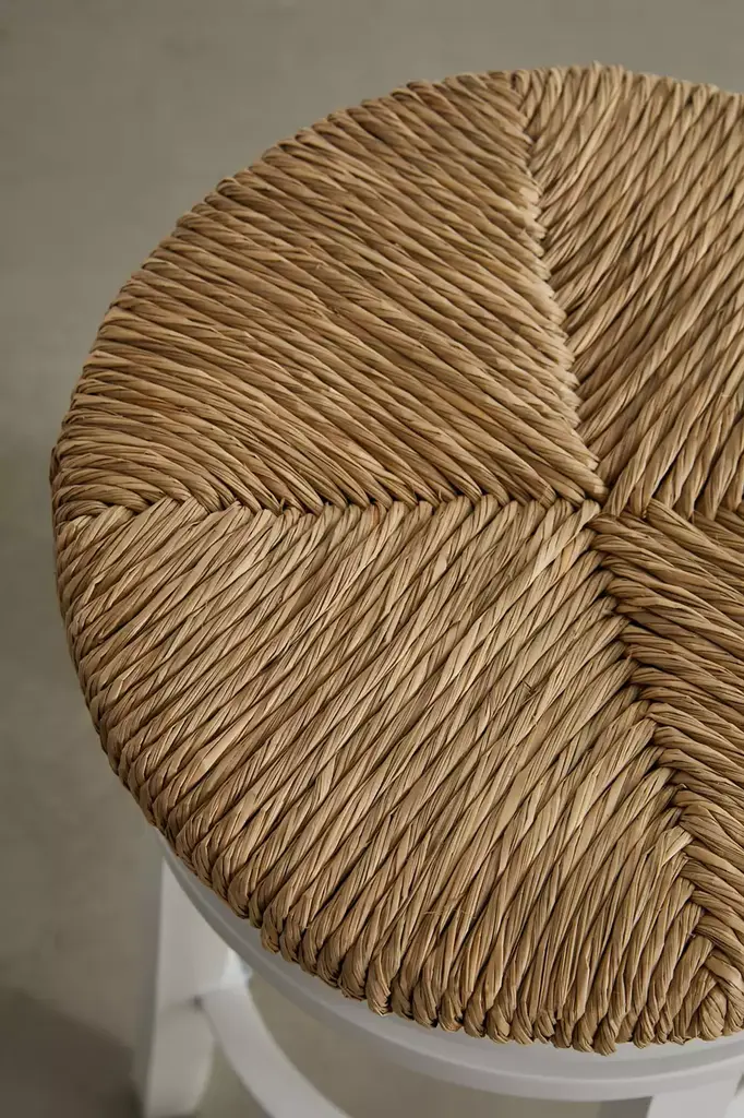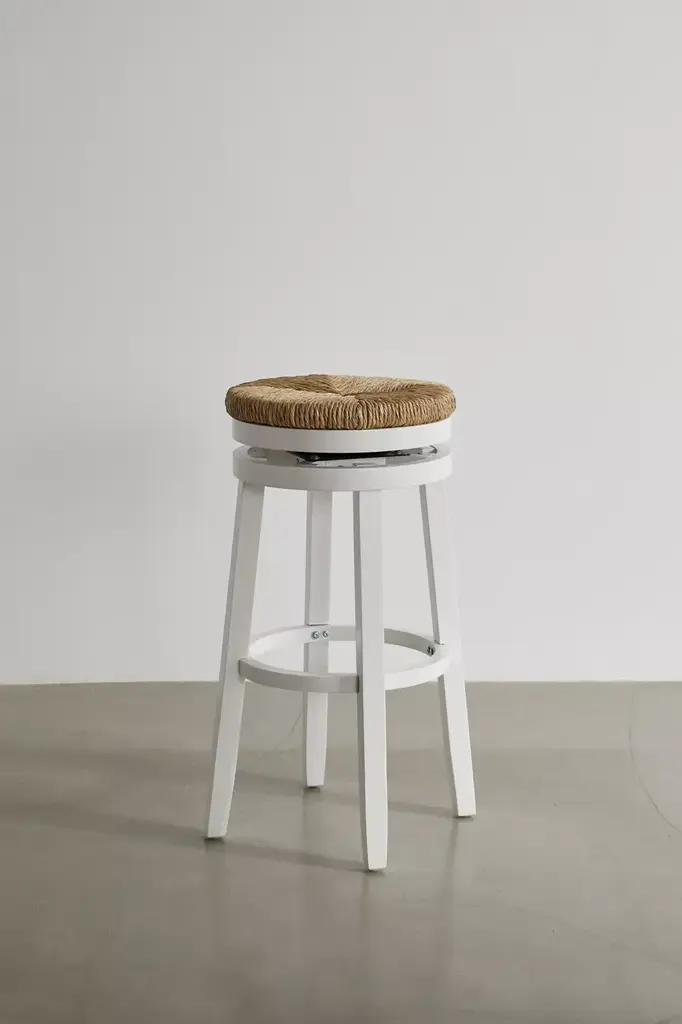 Infuse your at-home bar with a boho-inspired flair with this bar stool. Featuring a 360-swivel seat wrapped in sea grass set on four blocked legs with a footrest at the base that allows for comfortable seating while you snack and socialize. **Features** \- Boho-cool bar stool from the Maxine furniture collection \- Sea grass-wrapped swivel seat \- Blocked style legs with footrest at the base \- Assembly required **Content + Care** \- Assembly required \- Rubberwood; sea grass \- Wipe clean \- Imported **Size** \- Dimensions: 19.25"dia x 31"h \- Seat height: 31" \- Interior seat dimensions: 15.4"l x 15.3"w x 2.13"h \- Weight: 19.4 lbs \- Shipping package dimensions: 32.7"l x 20.5"w x 5.51"h \- Shipping package weight: 23.8 lbs