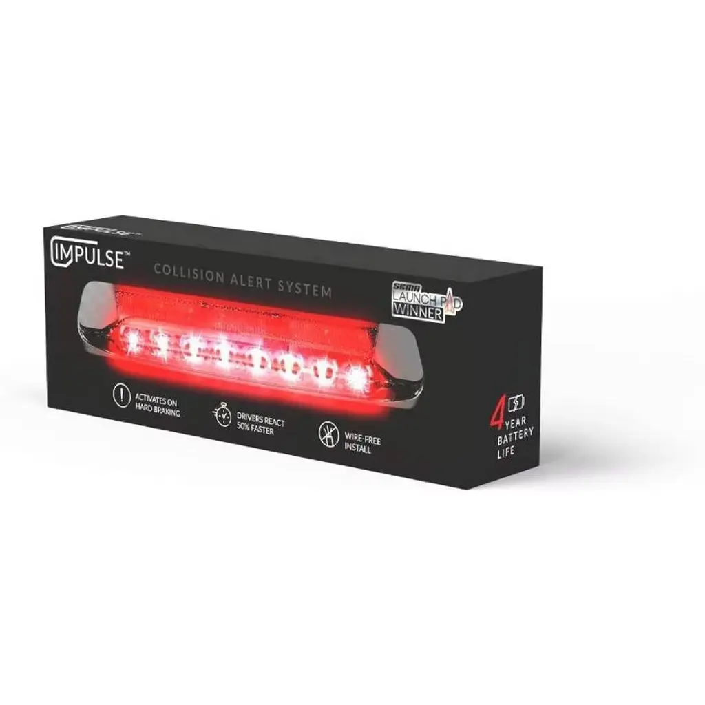 Are you ever worried that someone is driving too closely behind you? What will happen when you need to stop quickly? Introducing Braking Bar, the world's first Collision Alert System for the driver behind you. Introducing Braking Bar, the world's first Collision Alert System for the driver behind you. Now, with Impulse - the Sudden Brake Alert warning system, the driver behind you is warned when you slam on the brakes with ultra-bright, pulsing LEDs, making them react up to 50% faster and preventing them from hitting you.