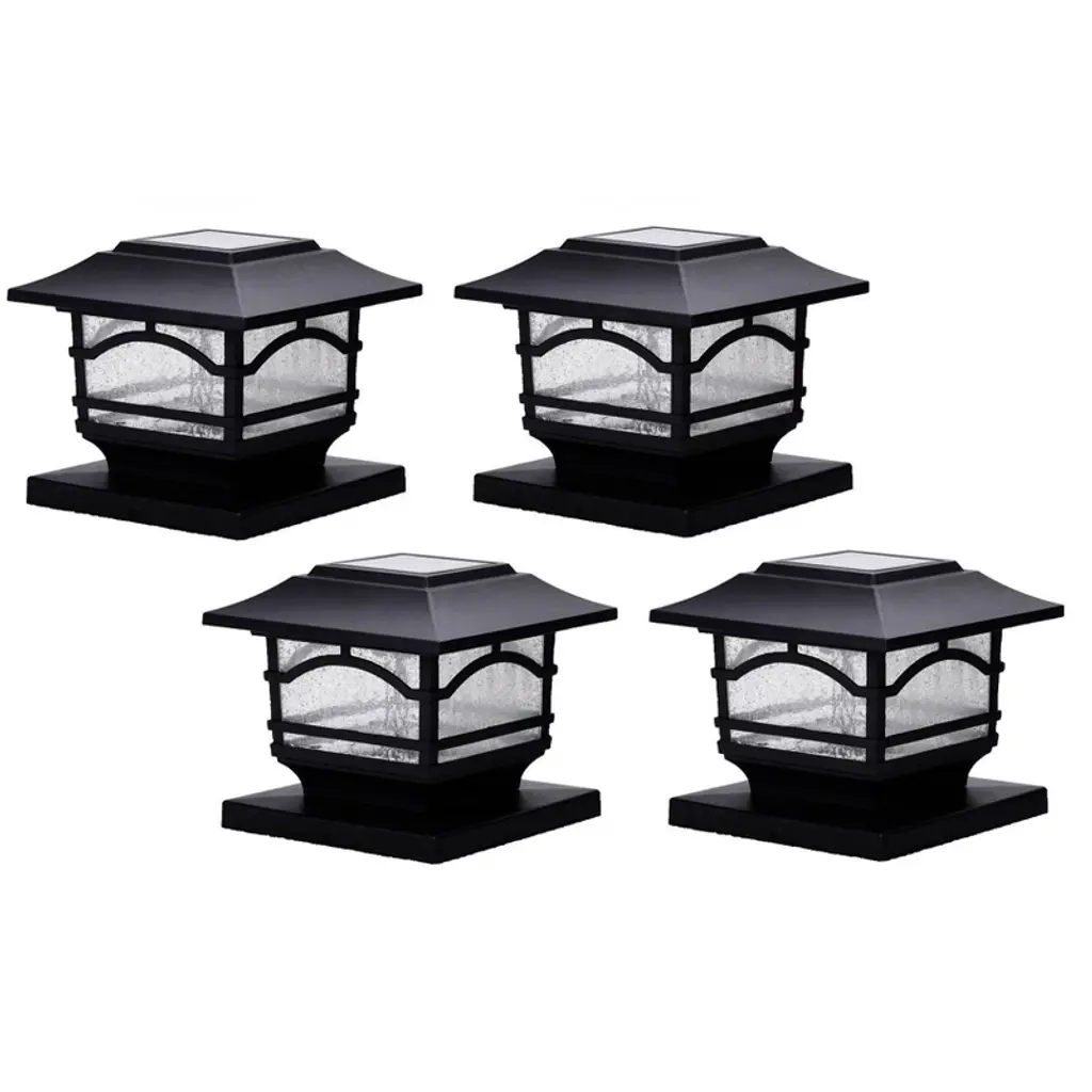 Maxsa Innovations Solar 4Pk Post Cap & Deck Railing Lights Black: Weather-resistant Outdoor Lamp Posts, Metal & Glass