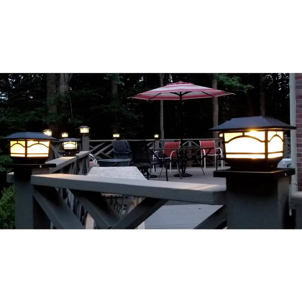 "MAXSA's Post Cap, Fence, and Deck lights are the perfect addition to your deck, fence, railing, post tops, garden, or outdoor space.Cap lights convert energy from the sun during the day to light up at night without the need for cords or electrical outlets.LED lights can stay lit for up to eight hours at night.Classic, timeless look with a warm white light.Easy installation. Does not require an electrician.Available in black, bronze, and white.Comes as a set of four lights."
