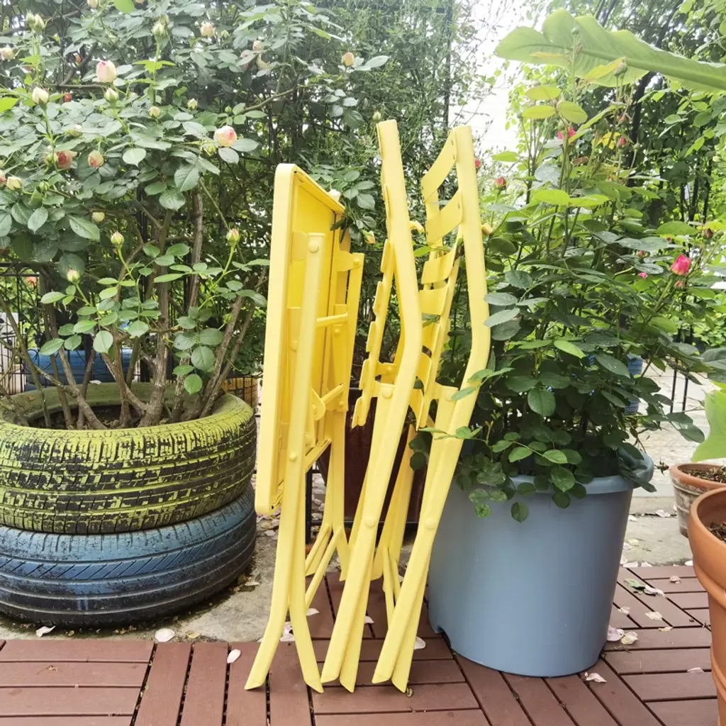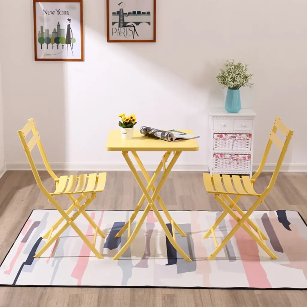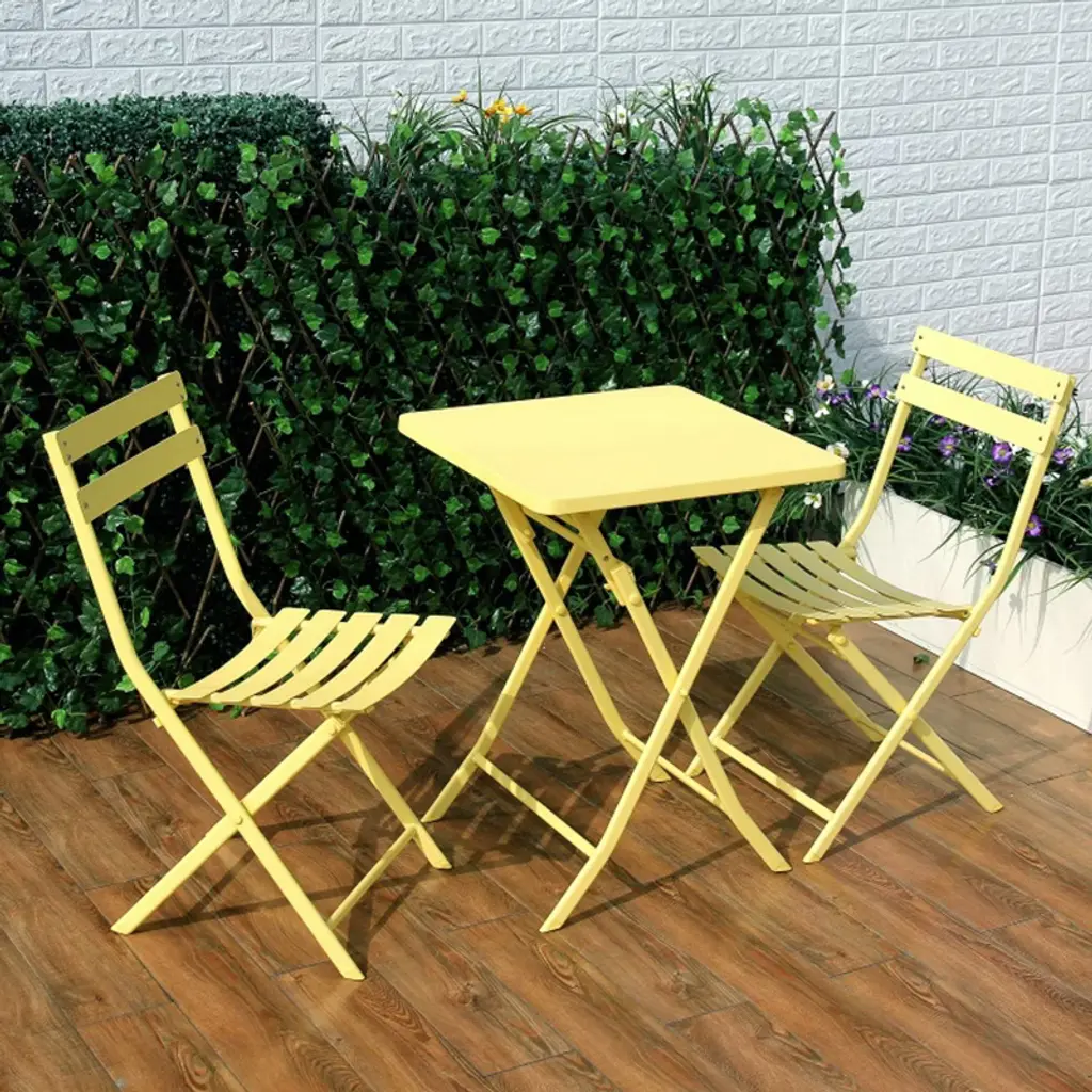 Mayeerty 3 Piece Foldable Square Patio Bistro Set Table Chairs Yellow