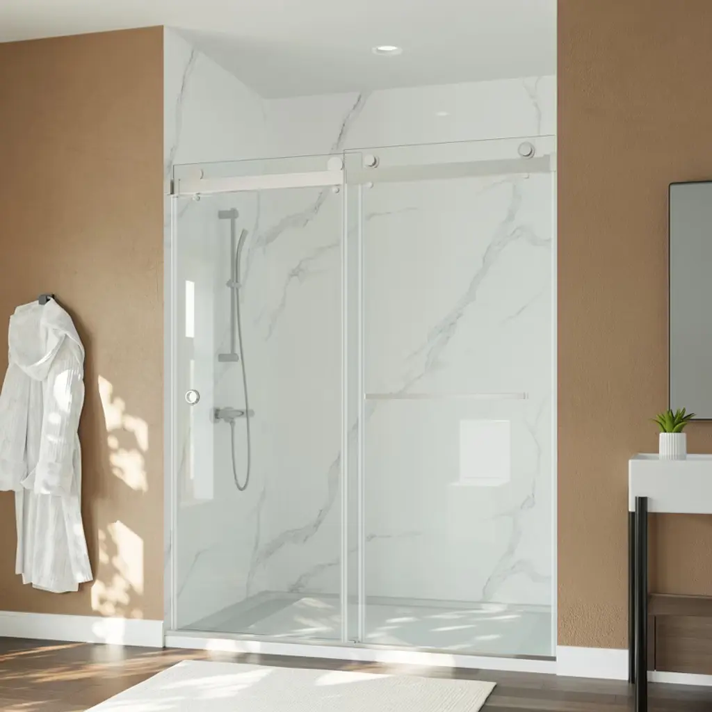 Want to make your bathroom tidier and more beautiful? MAYEERTY shower door is your good helper! It is beautiful and practical. Whether it is a small bathroom at home, a hotel bathroom, or an apartment bathroom, it is easy to separate wet and dry areas. You don't have to worry about water splashing everywhere when taking a shower. The shower door is made of thick tempered glass, which is strong and safe. There is a magical coating on the surface of the glass, which is like putting on a "dirty-proof coat" for the glass. Water stains and soap marks can be wiped clean, and it will remain as bright as new after long use. The door frame is made of thin aluminum alloy and looks very simple. Whether your home is modern, Nordic, or light luxury, it can be perfectly matched. Transparent glass can also make a small bathroom look more spacious and not crowded at all.