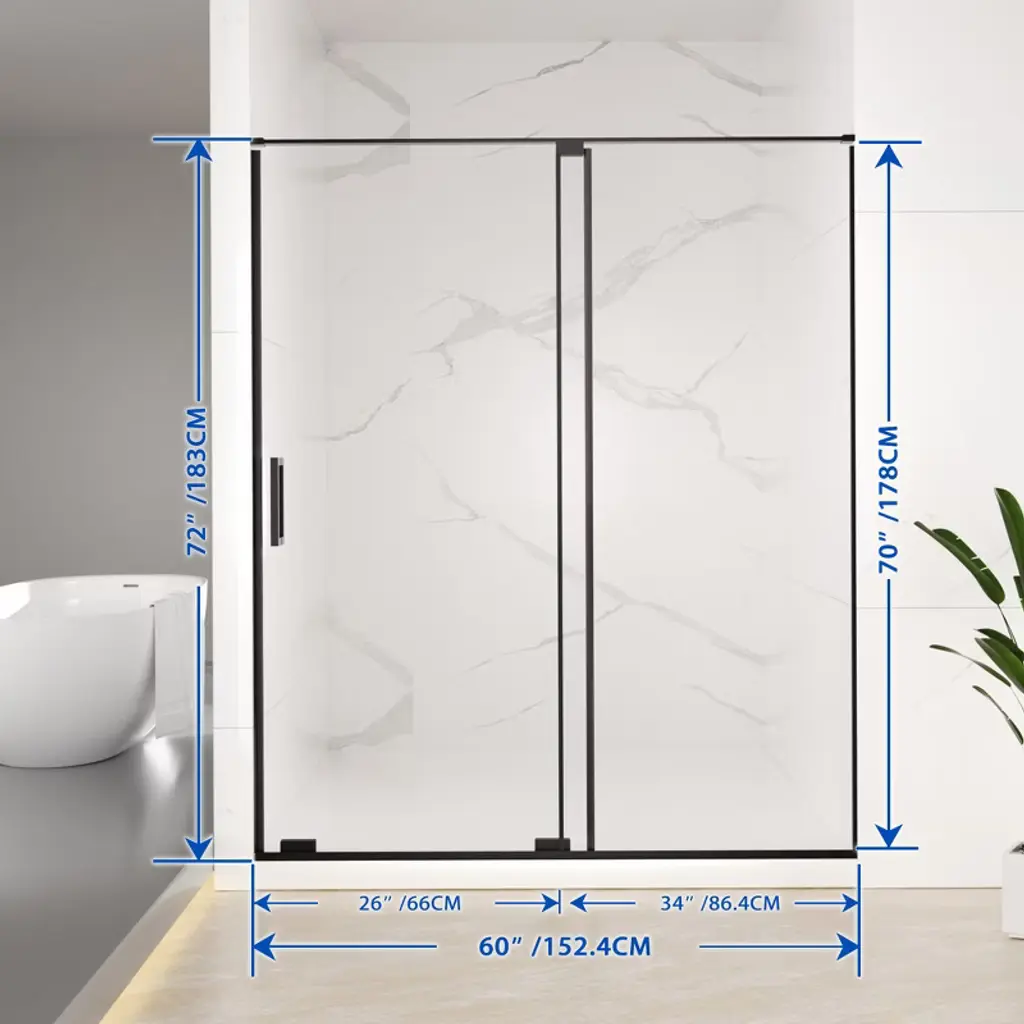 Mayeerty 56-60" W X 72" H Semi-frameless Sliding Shower Door, 5/16" Clear Tempered Glass, Matte Black Finish, Adjustable Width 4"