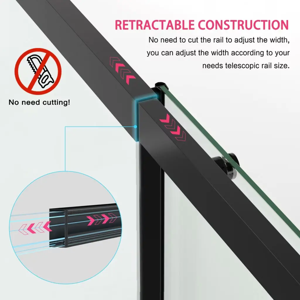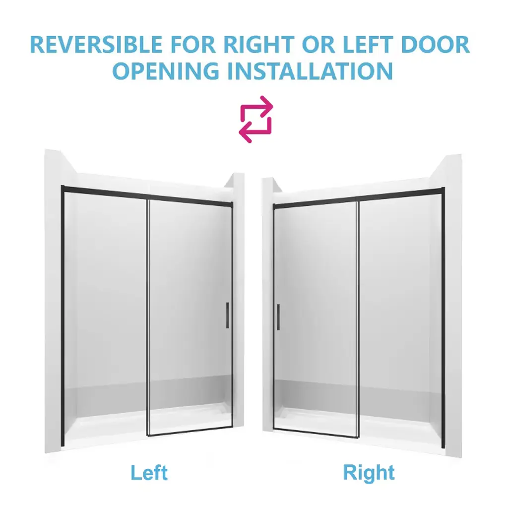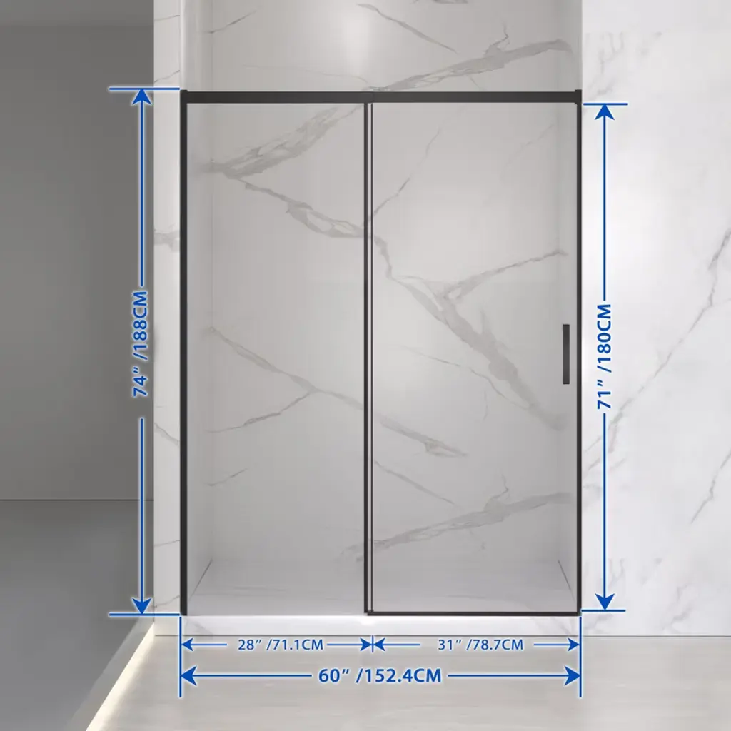 Mayeerty 56-60" W X 74" H Semi-frameless Sliding Shower Door, 1/4" Clear Tempered Glass, Matte Black Finished, Adjustable Width ̈C No Cutting Required