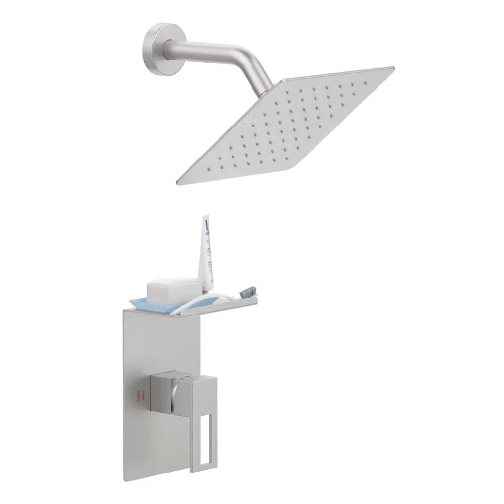 Mayeerty Shower Faucet With Storage Rack Rain Shower Head Shower With Single Spray Shower Head Shower Faucet Set Complete Brushed Nickel