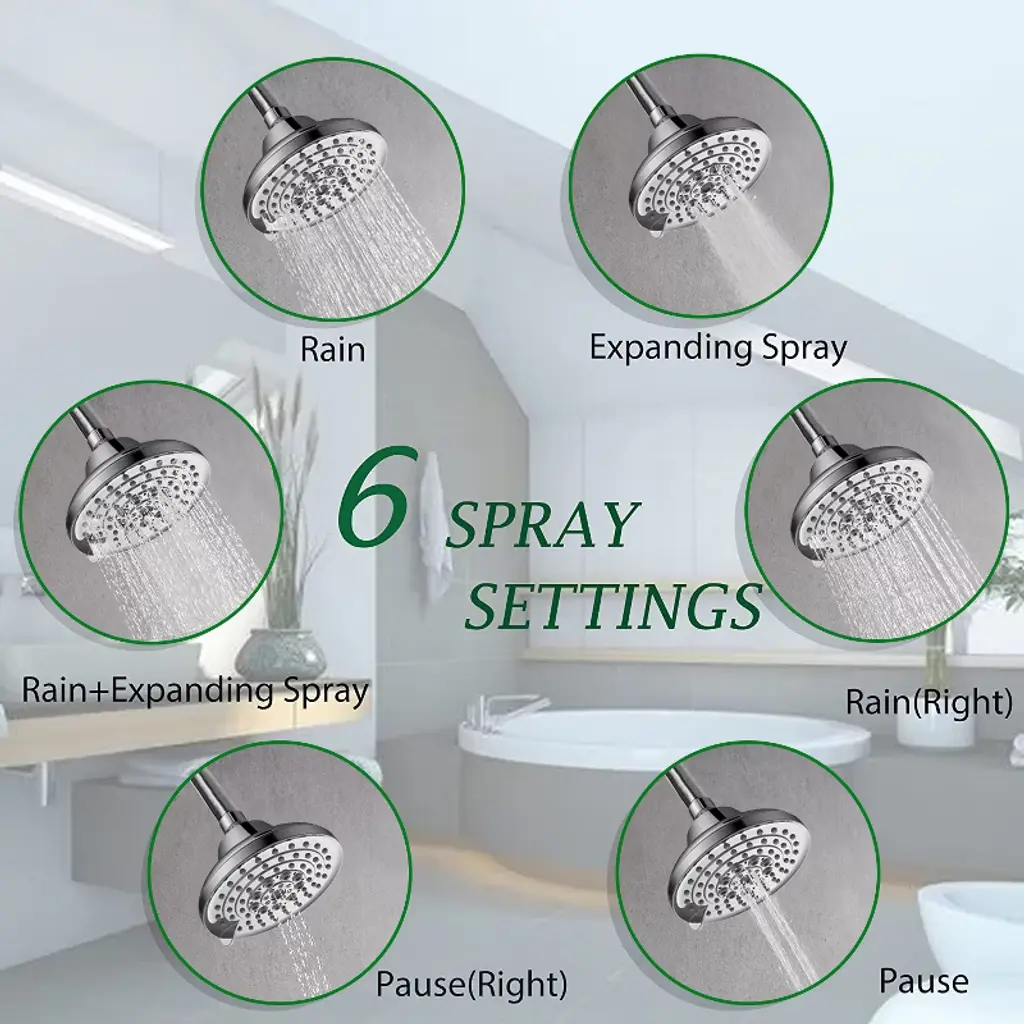 Mayeerty Spray Settings High Pressure Shower Faucet Fixed Showhead Adjustable Shower Head With Anti Clogging Nozzle Low Flow Easily Installation