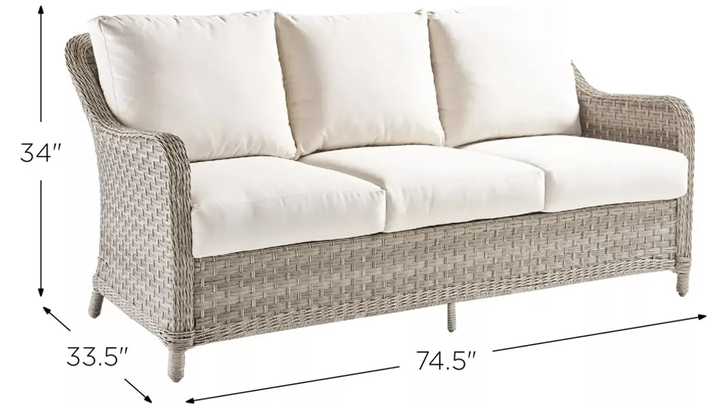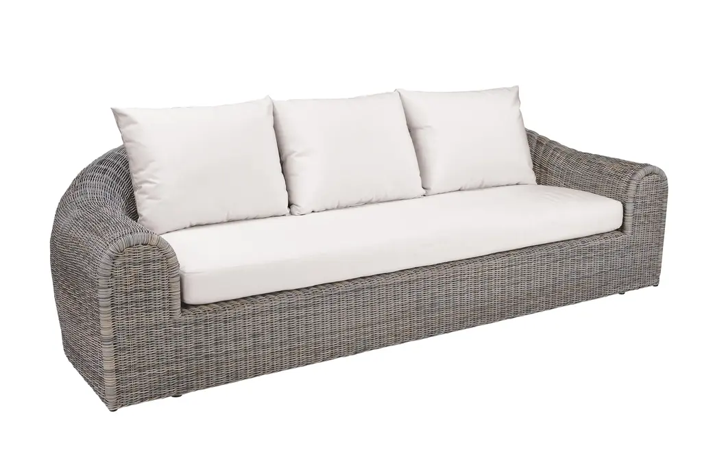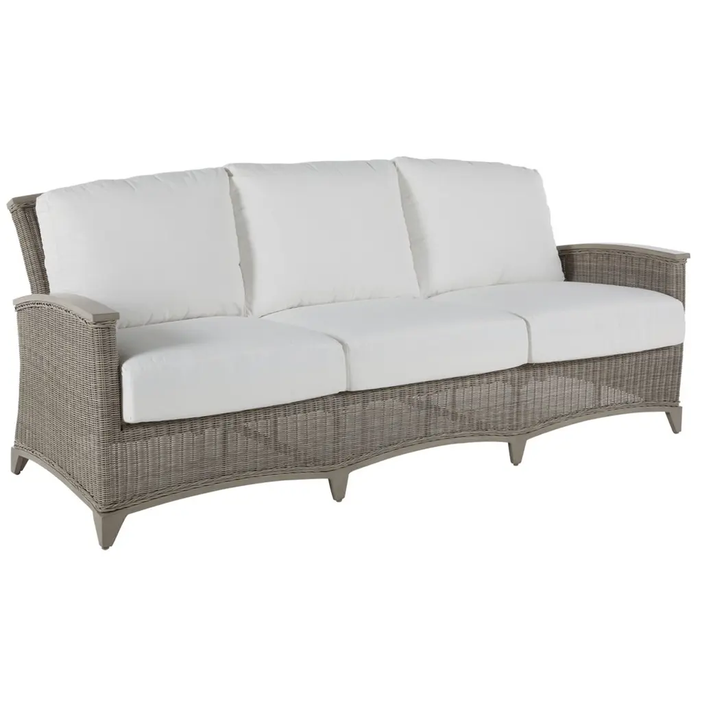 The Mayfair Outdoor Sofa has graceful, casual style that doesn't compromise on comfort and durability. Expertly finished synthetic wicker and skillful design elevates the look of any outdoor space. Features high-density polyethylene synthetic wicker, handwoven over fully-welded powder-coated aluminum framing. Each seat has an independent suspension. Mold And mildew resistant cushion cores are made with layered, high-density poly fiber and dry conjugate blend.
