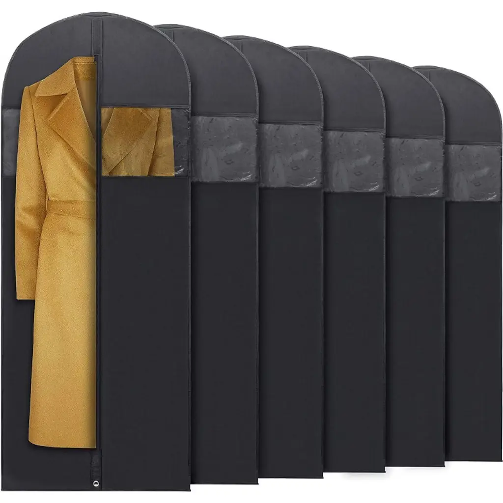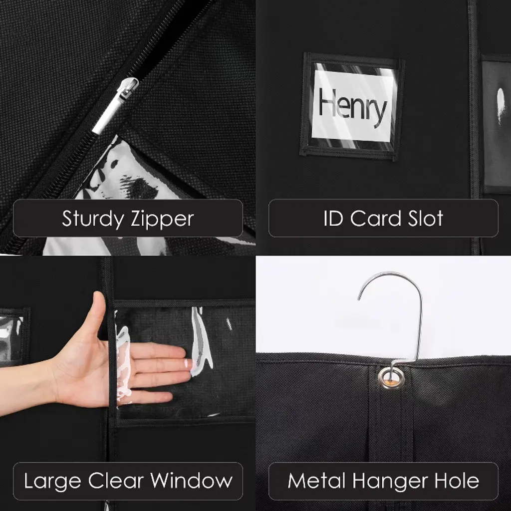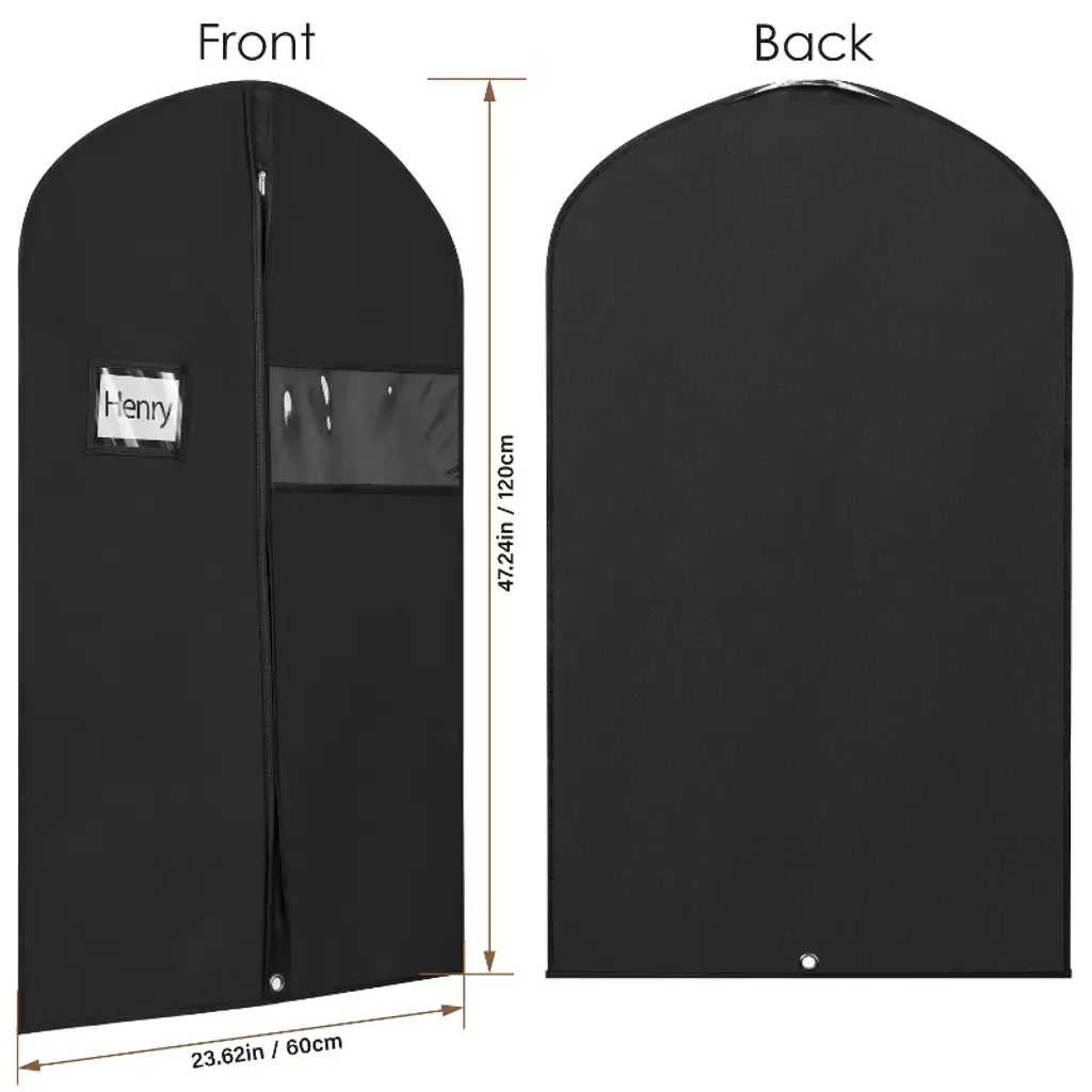 Mber 5-pack 47" Garment Bags For Travel, Slim Zipper Suit Bag Travel, Garment Bags For Hanging Clothes With Clear Card Slot, Black