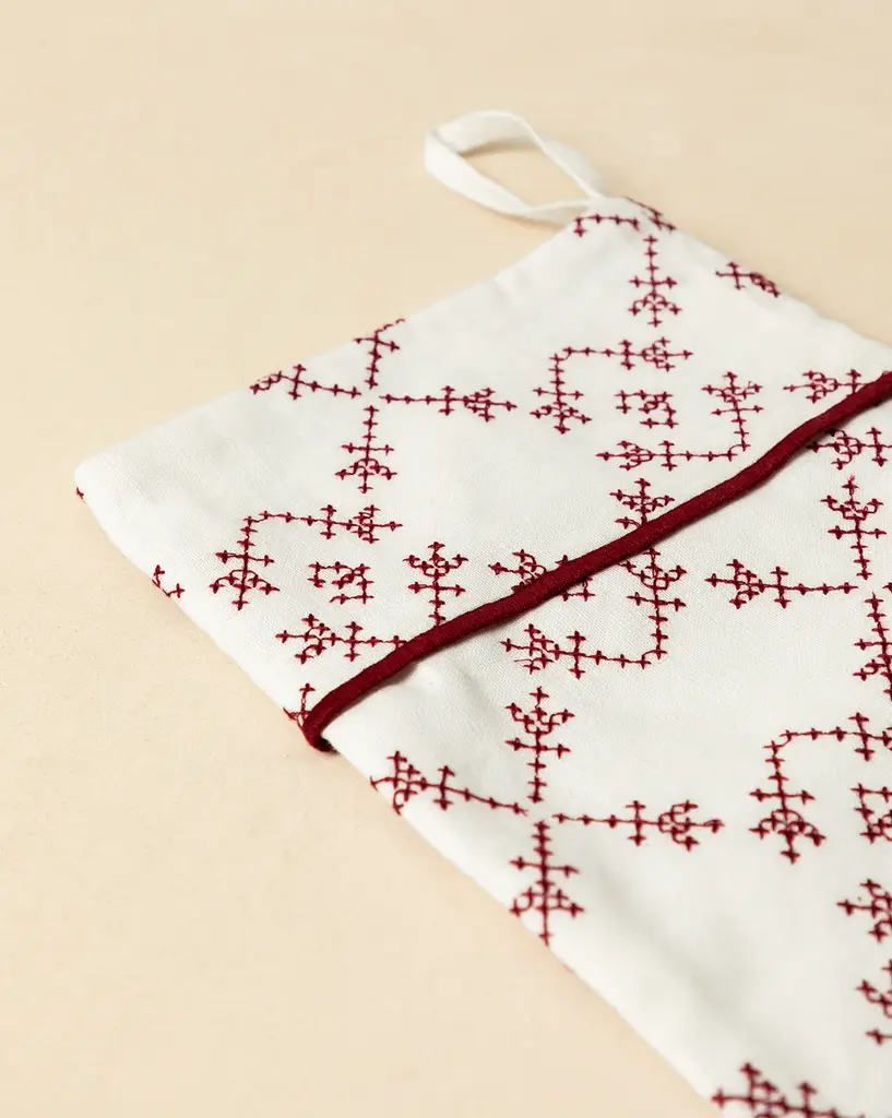 With its delicate stitched motif and classic silhouette, the McCallister Stocking brings heirloom charm to your holiday mantel. The warm, cranberry-hued pattern on soft neutral fabric creates a collected feelperfect for mixing, matching, and making spirits bright.