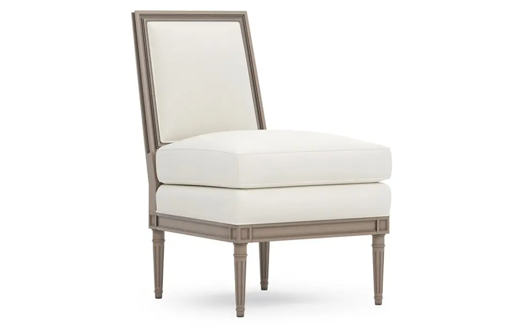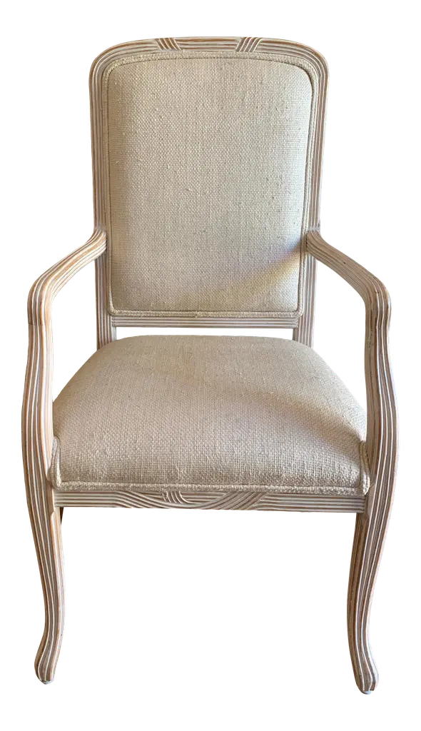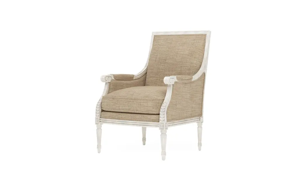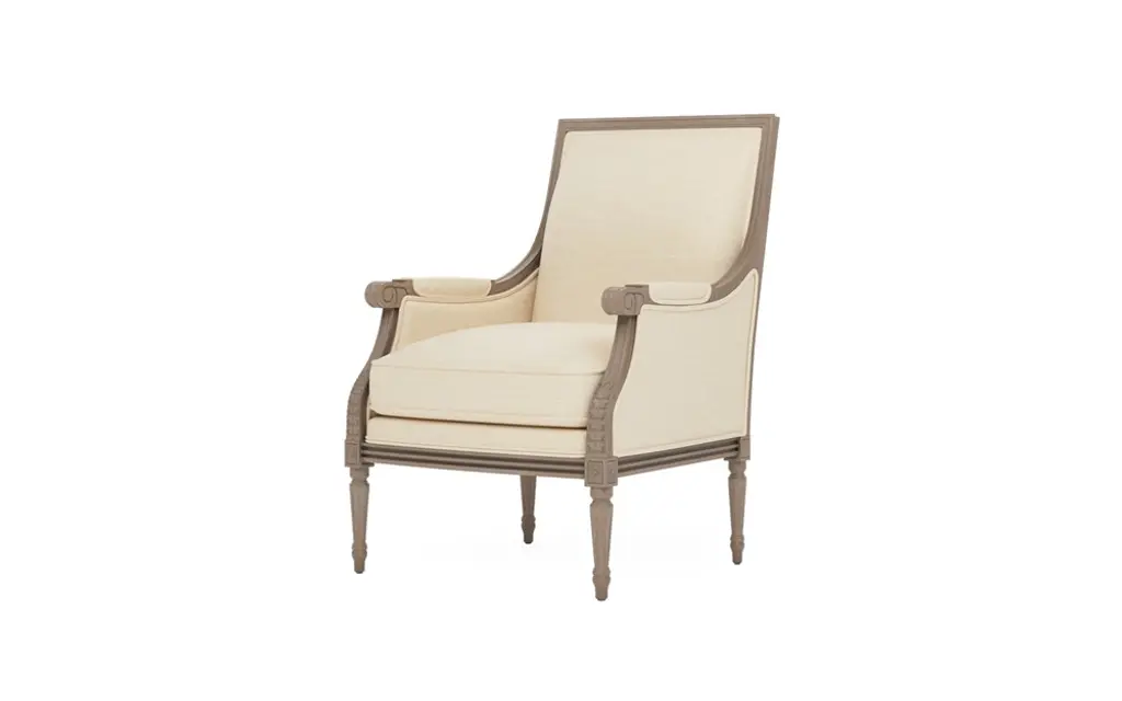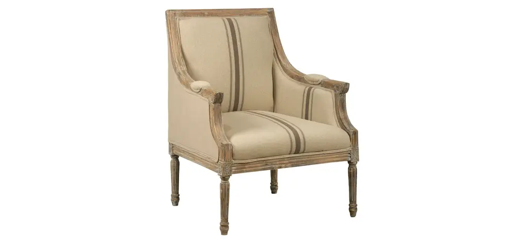 French detail, an exposed, whitewashed hardwood frame and linen blend upholstery makes the McKenna accent chair a real beauty. Its unique hybrid seating makes it surprisingly comfortable and obviously elegant accent for any room.