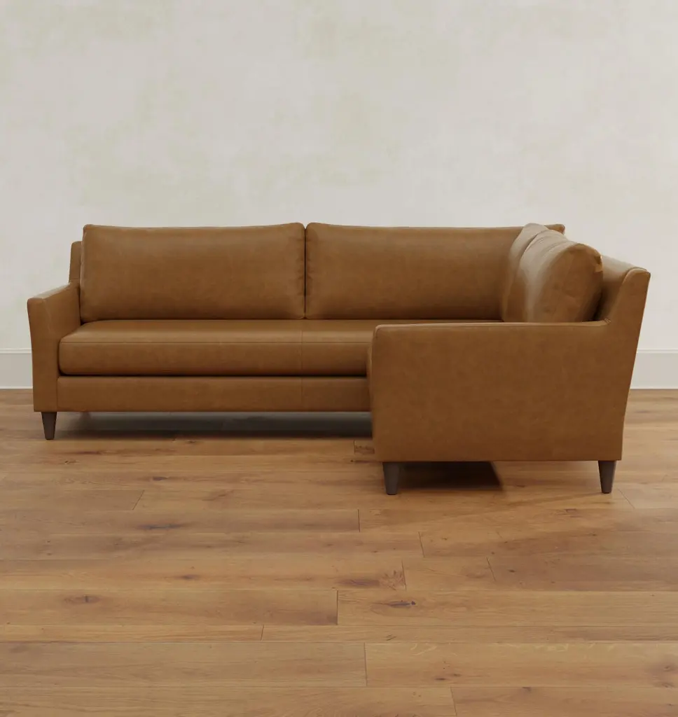 Designed with a modern silhouette and a well-proportioned bench seat cushion, our McNary Studio Sectional Leather Sofa was designed for comfort. Available in right and left arm configurations, and several premium leather and fabric upholstery options.