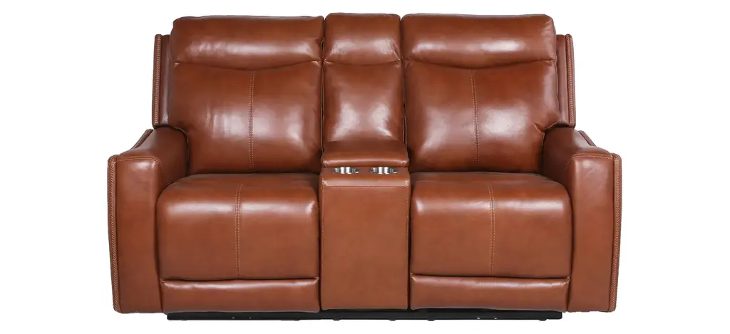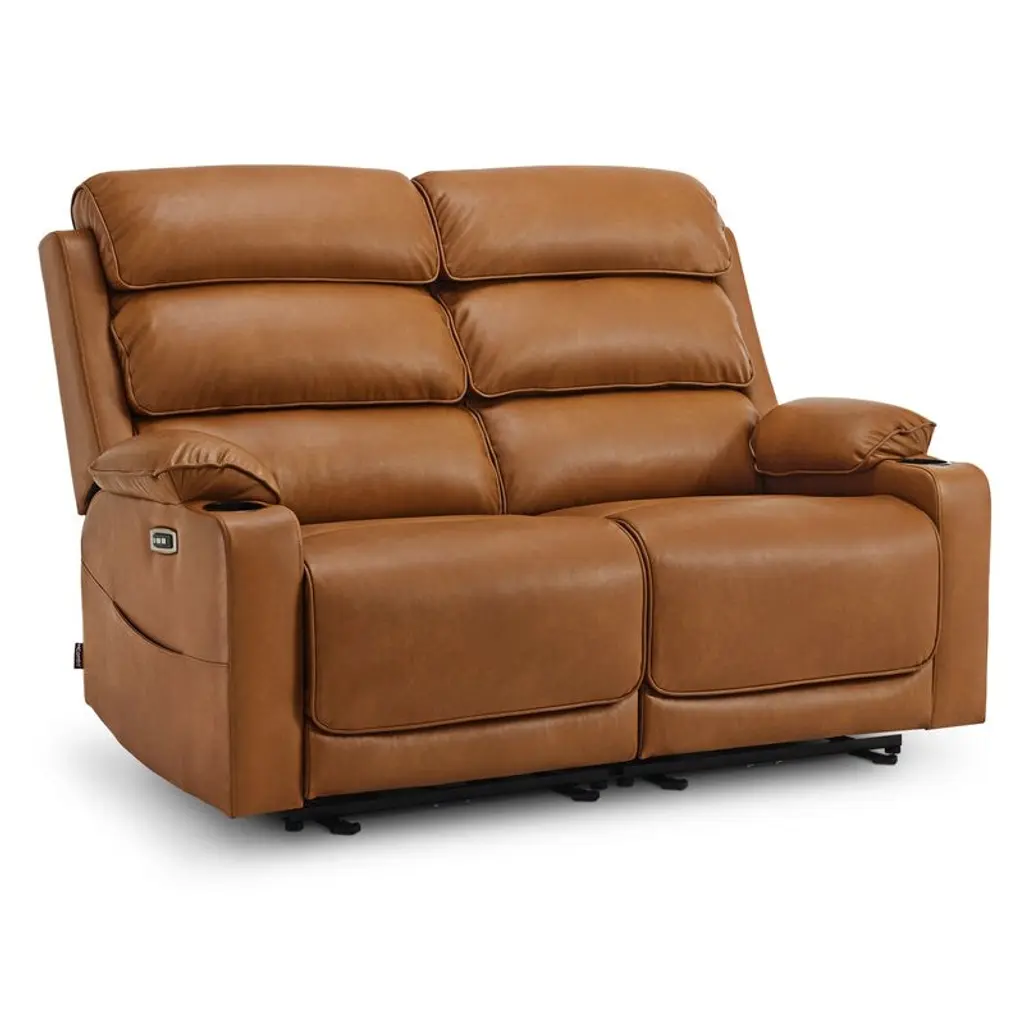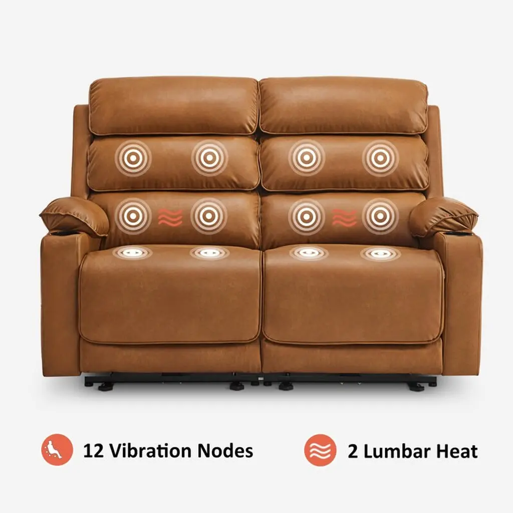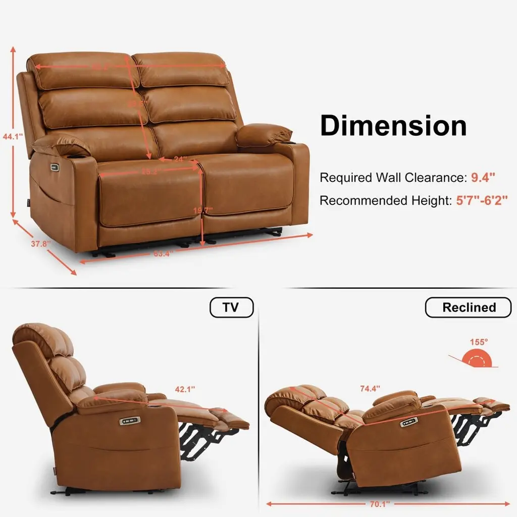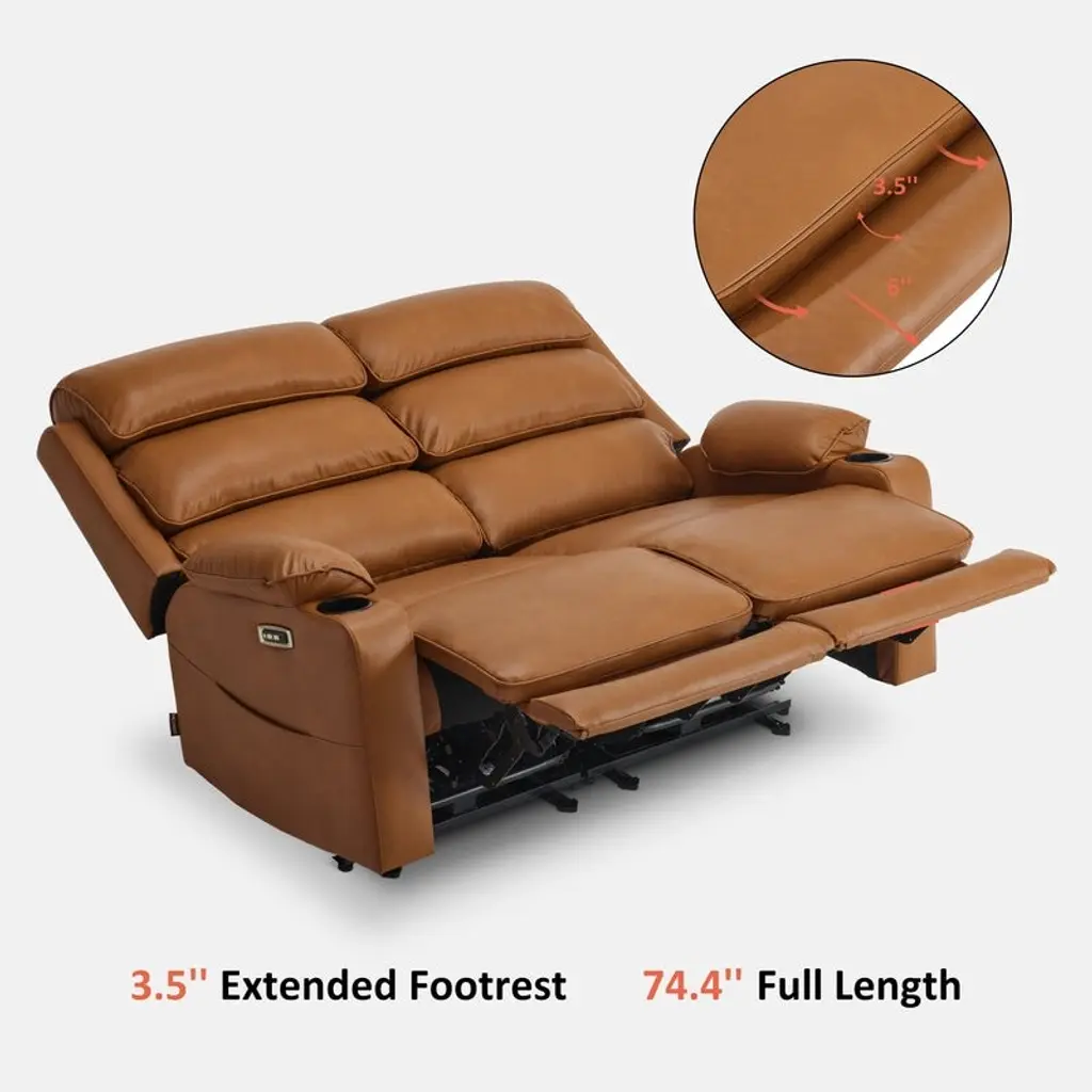 Mcombo 63.4" Power Loveseat With Adjustable Headrest, Heat And Vibration, Faux Leather Electric Loveseat Recliner 6711 - Saddle