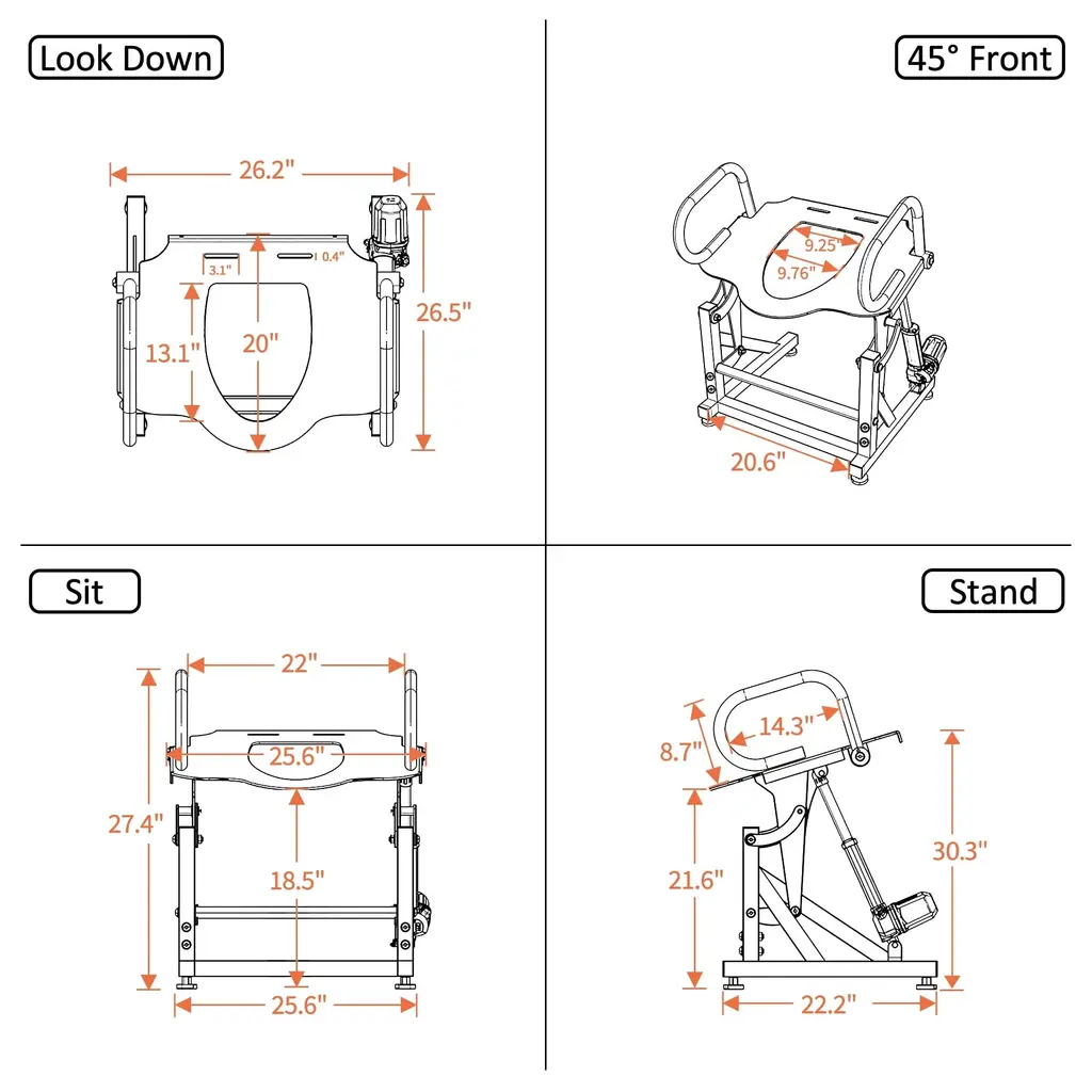 Why choose our Electric Toilet Seat Lift? This toilet seat lift will become your intimate and reliable assistant. You can use the toilet dependently whenever you want and do not worry about disturbing your family when they in the dream Considering demands of more people, we develop the second generation electric toilet seat lift to be raised to max30.3'. Thanks to that, it will help high user to standup easilyFeatures