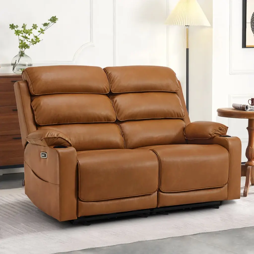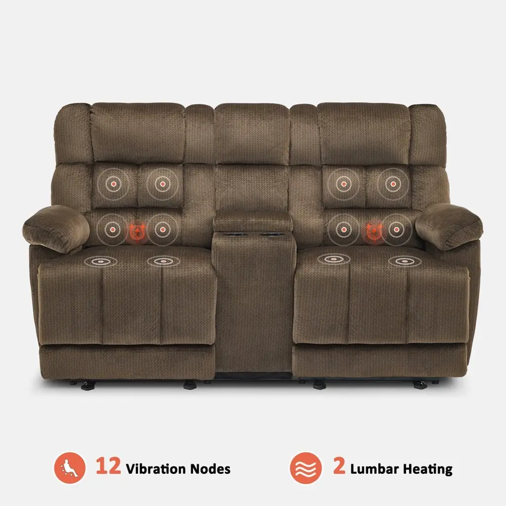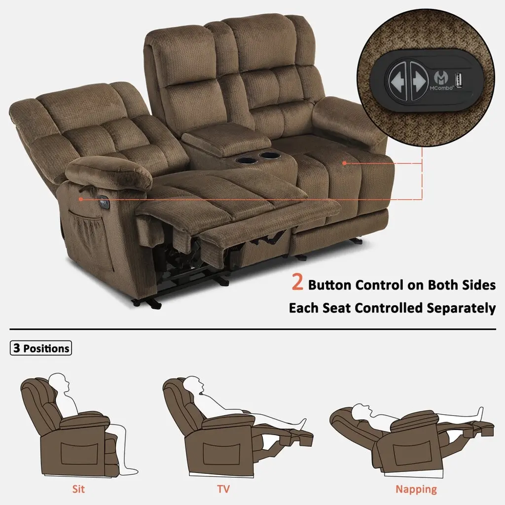 Mcombo Power Loveseat Recliner With Console, Vibration And Heat, Usb Charge Ports Rs6234 - Brown