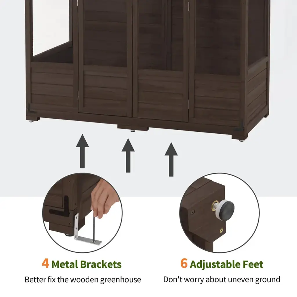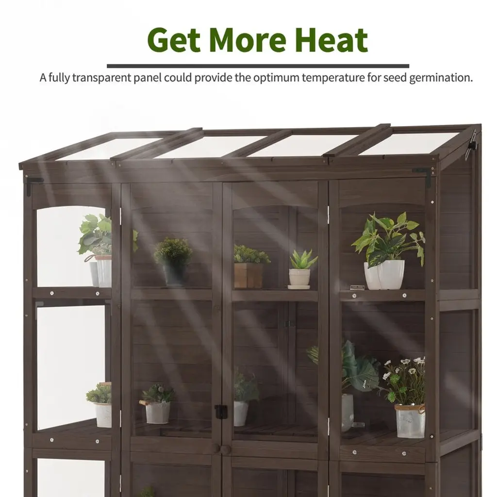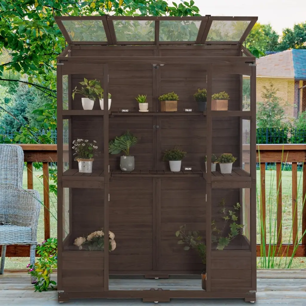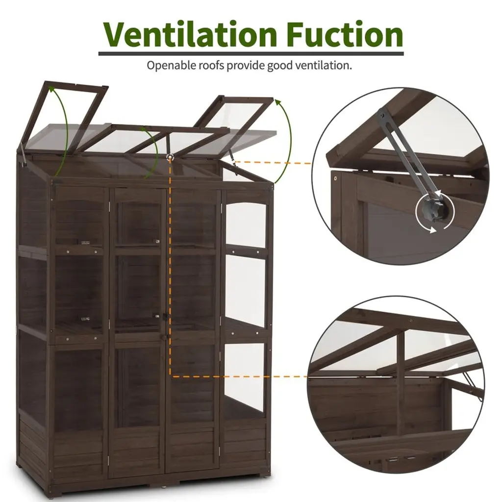 Mcombo Walk-In Greenhouse With Openable Roof And Lockable Door, Solid Wood 0899 - Brown
