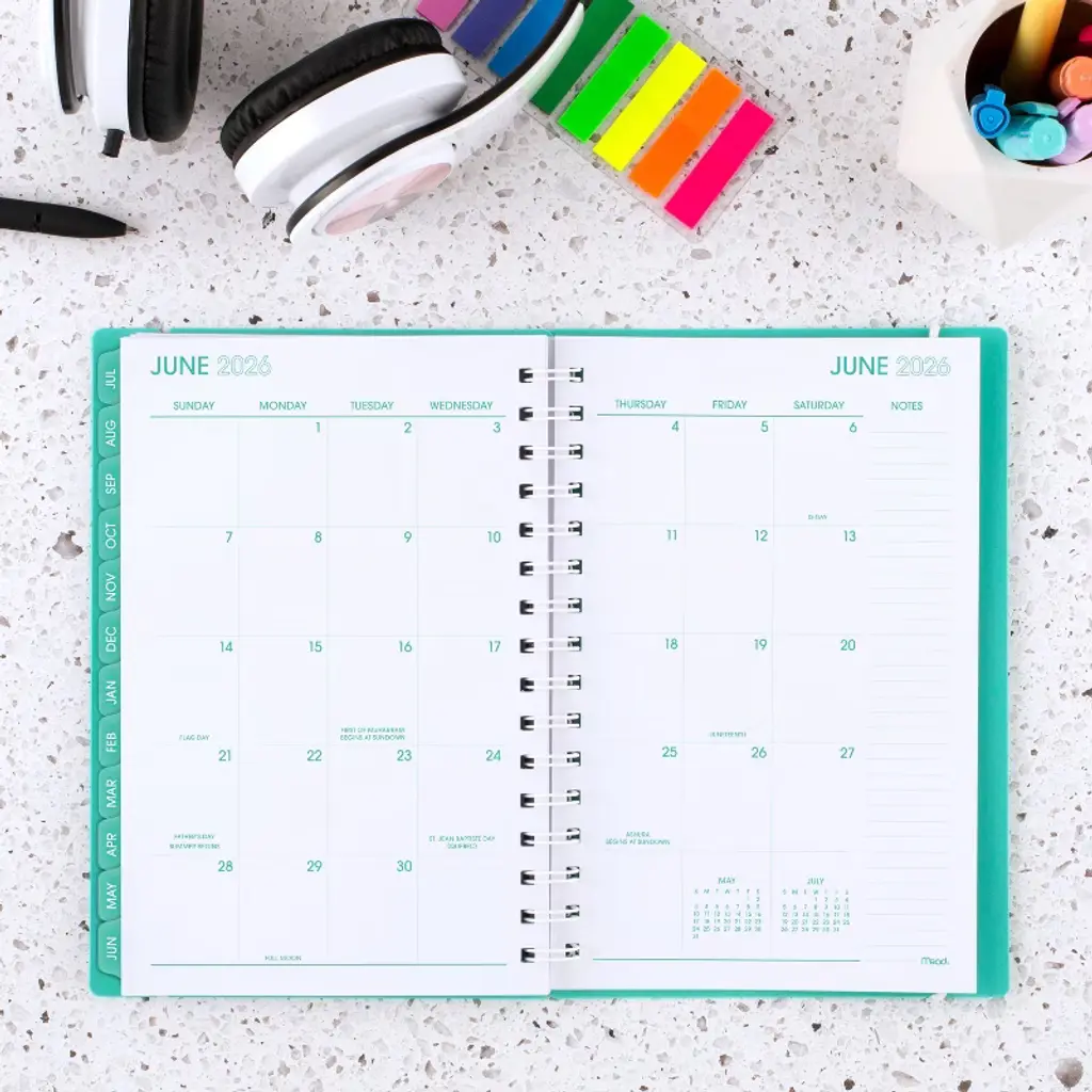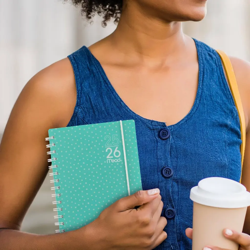 Add a pop of color to your year with the Mead® Color Pop Weekly Monthly Planner. This planner runs from April 2025 – June 2026 for academic planning and beyond. Planner includes future planning pages, a double-sided storage pocket and 20 notes pages to help keep you on track all year long. Style and durability come together with the Aquatic Awe Polka Dot cover and a bungee closure.
