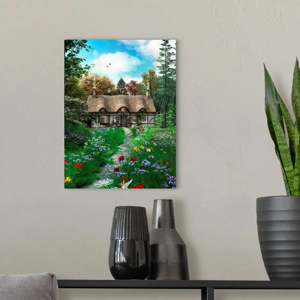 Meadow Cottage Path wall art for home and office decor. Discover canvas art prints, photos, mural, big canvas art and framed wall art in GreatBigCanvas.com's varied collections.