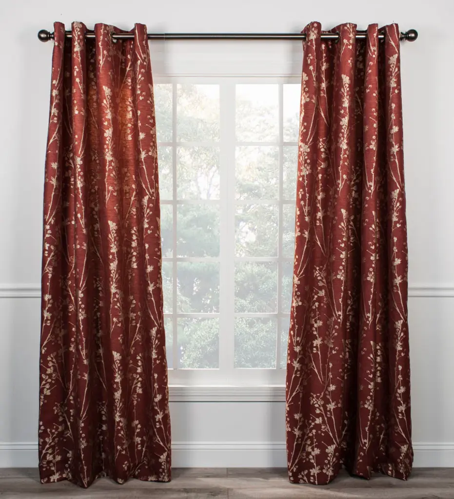 A sophisticated design and two-tone pallet in bold colors brings a contemporary style to your window. High quality fabric paired with woven textures drapes beautifully. Each panel is constructed with 8-grommets sewn into a 3-inch header. A natural colored broadcloth liner is sewn in for added privacy while allowing a bit of soft light thru during daylight hours. Grommets measure 1 5/8-inches inside diameter and simply slide over your standard or decorative curtain rod making them one of the easiest curtains to hang. Sold as a single panel, width is measured overall 50-inches and length is 63-inches from header top to bottom panel. Use multiple panels to custom fit your needs. Matching Meadow Floral Lined Scallop and Tie-Up Valance also available. Easy care; machine washable.