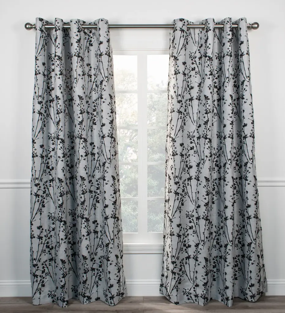 A sophisticated design and two-tone pallet in bold colors brings a contemporary style to your window. High quality fabric paired with woven textures drapes beautifully. Each panel is constructed with 8-grommets sewn into a 3-inch header. A natural colored broadcloth liner is sewn in for added privacy while allowing a bit of soft light thru during daylight hours. Grommets measure 1 5/8-inches inside diameter and simply slide over your standard or decorative curtain rod making them one of the easiest curtains to hang. Sold as a single panel, width is measured overall 50-inches and length is 84-inches from header top to bottom panel. Use multiple panels to custom fit your needs. Matching Meadow Floral Lined Scallop and Tie-Up Valance also available. Easy care; machine washable.