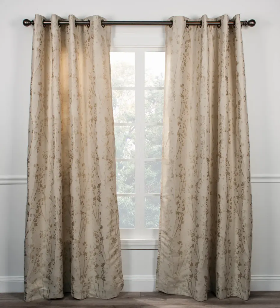 A sophisticated design and two-tone pallet in bold colors brings a contemporary style to your window. High quality fabric paired with woven textures drapes beautifully. Each panel is constructed with 8-grommets sewn into a 3-inch header. A natural colored broadcloth liner is sewn in for added privacy while allowing a bit of soft light thru during daylight hours. Grommets measure 1 5/8-inches inside diameter and simply slide over your standard or decorative curtain rod making them one of the easiest curtains to hang. Sold as a single panel, width is measured overall 50-inches and length is 63-inches from header top to bottom panel. Use multiple panels to custom fit your needs. Matching Meadow Floral Lined Scallop and Tie-Up Valance also available. Easy care; machine washable.