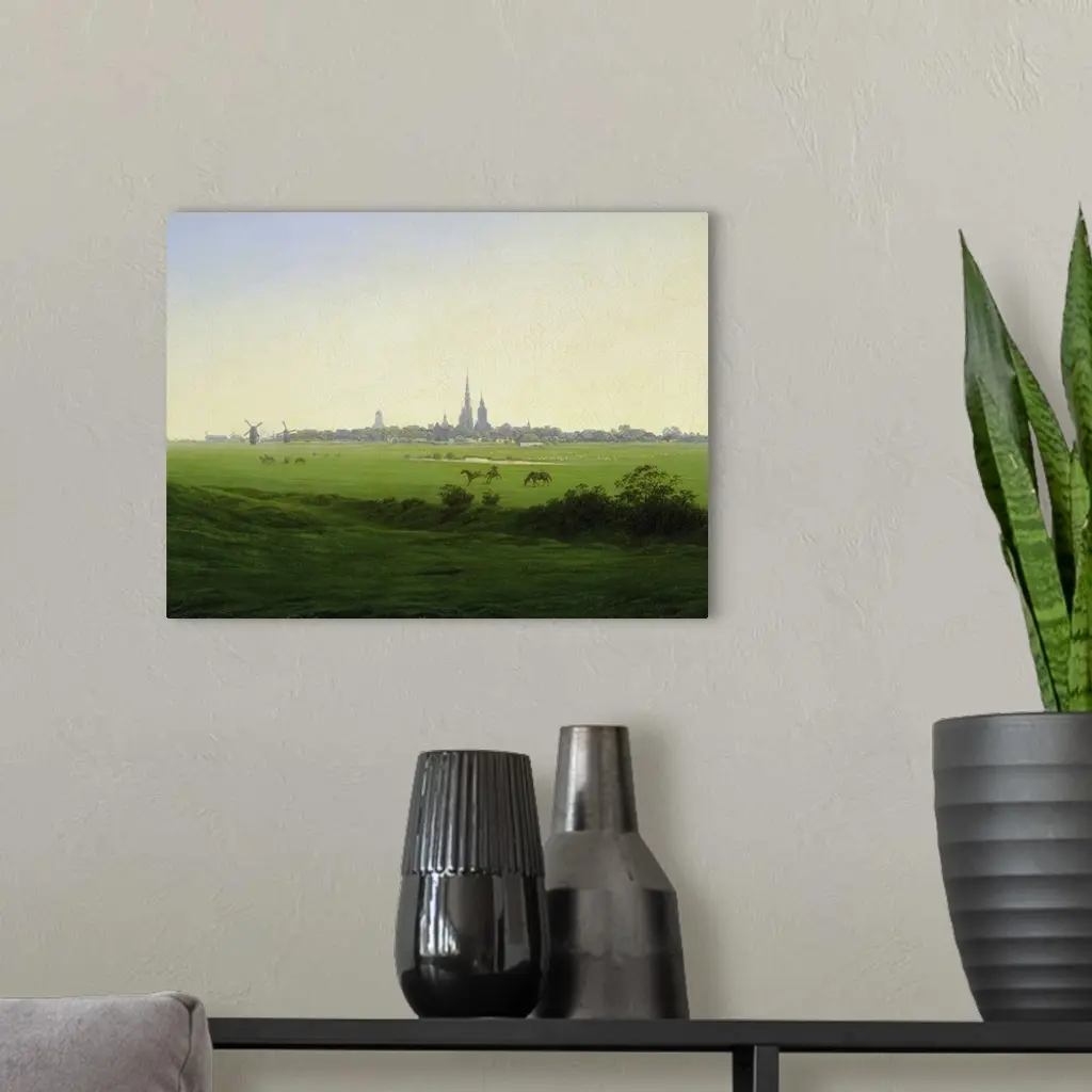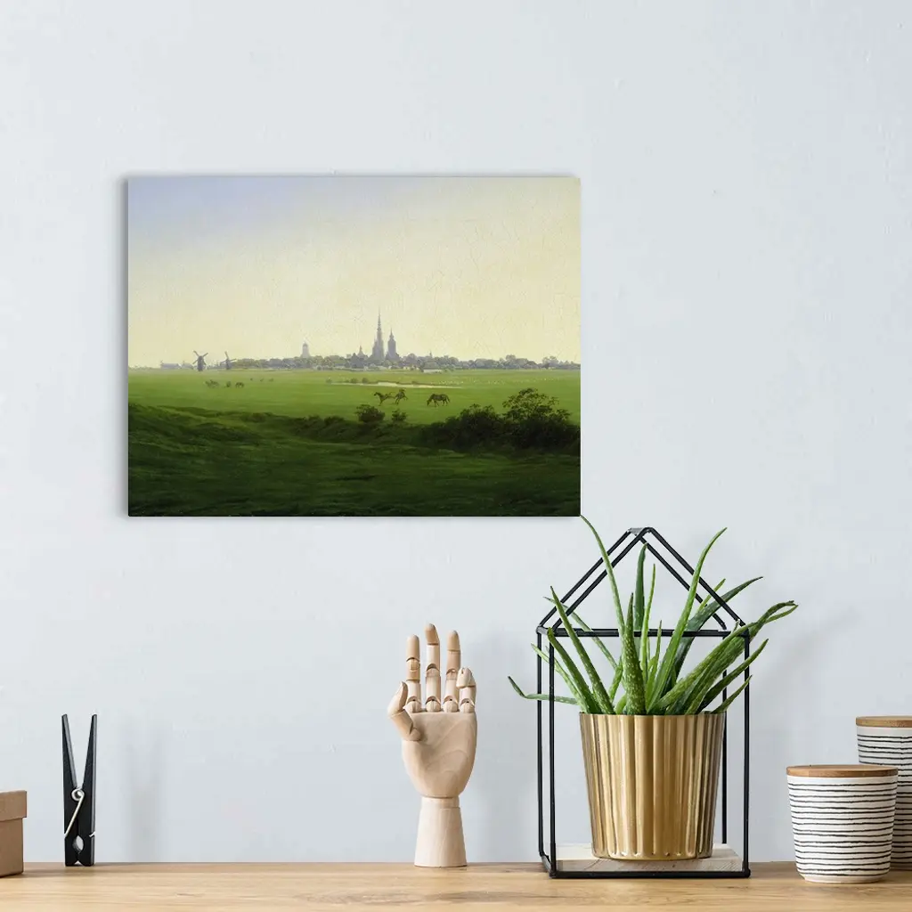 XKH141321 Meadows near Greifswald (oil on canvas) by Friedrich, Caspar David (1774-1840); 34.5x48.3 cm; Hamburger Kunsthalle, Hamburg, Germany; German, out of copyright