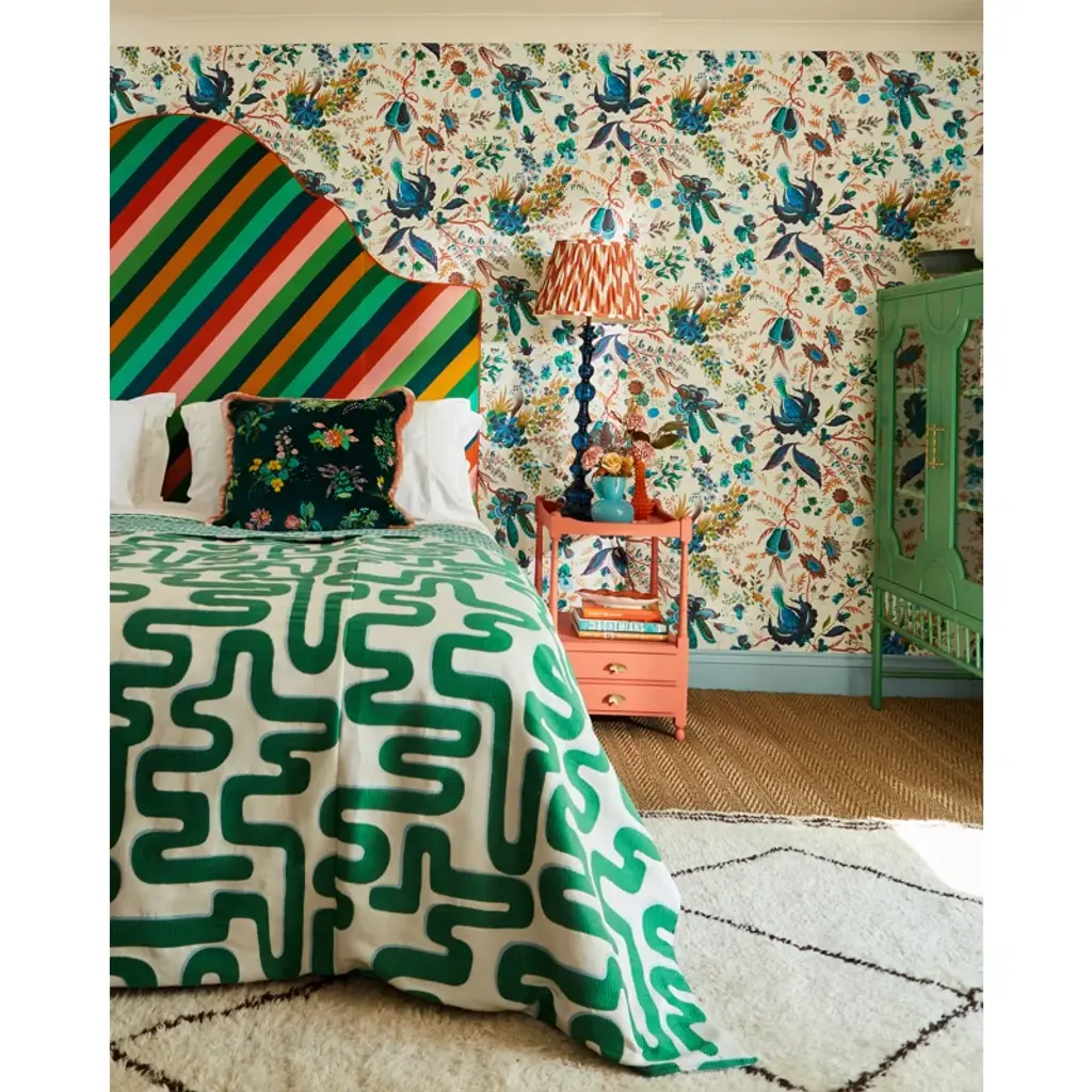 A bold contemporary woven fabric Meander is inspired by the winding woodland walks that surround Sophie’s home tempting you to slow down and wonder. A drapery quality jacquard its fine highlight stripe adds a detailed pop of contrast.