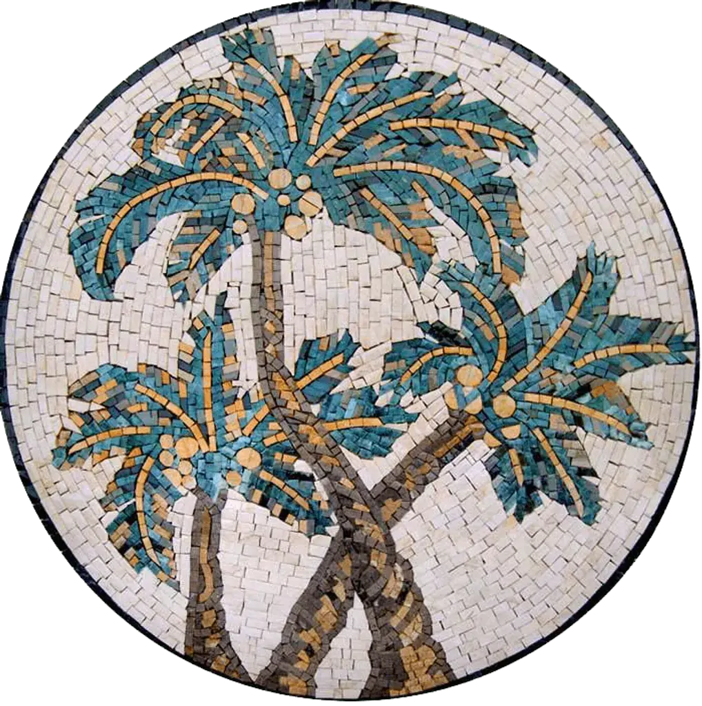 Medallion Mosaic Tile Art - Palm Trees - 152cm X 152cm (60" X 60")