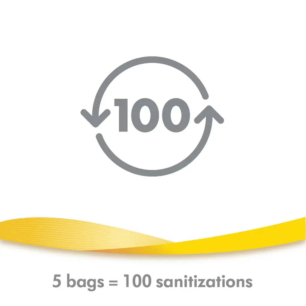 Medela’s Quick Clean Micro-Steam Bags are part of our Quick Clean family of products, designed to simplify cleaning both at home and away through convenient, portable options to help ensure your breast pump parts and accessories are clean and ready for use. Use our Quick Clean Micro-Steam Bags to easily and thoroughly disinfect breast pump parts, breast milk bottles, nipples, pacifiers, breast shields, and more in about 3 minutes – using only water and a microwave. These steam bags for bottles and other breast pump necessities are reusable up to 20 times and eliminate 99.9% of most common bacteria and germs. They can also be used for easy organization of parts and accessories while on the go or away from home for added convenience.
