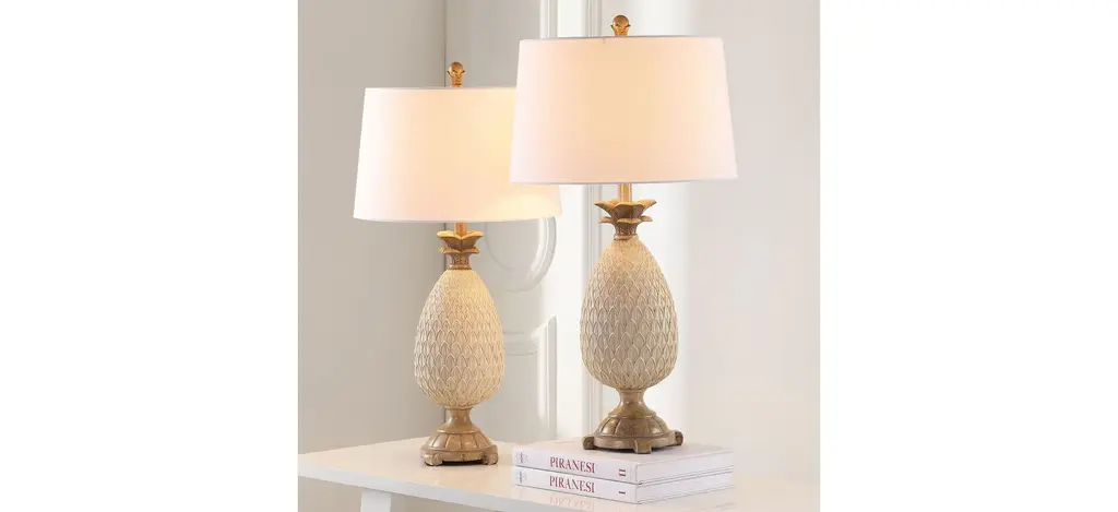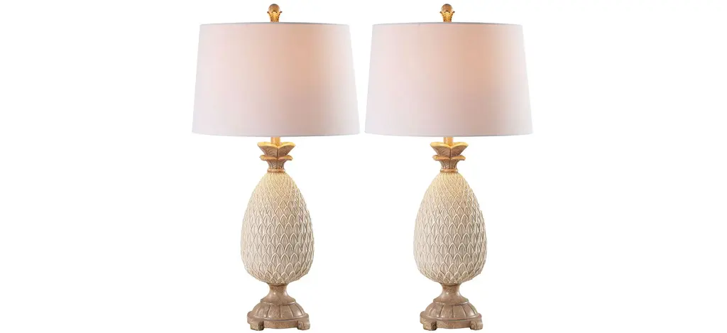 This pineapple Medford Table Lamp Set adds an elegant twist to a tropical motif. Perfect for a coastal living room, bedroom, or entry way, the antique cream and brown hues add a warm finish to a classic. Sold in sets of two.