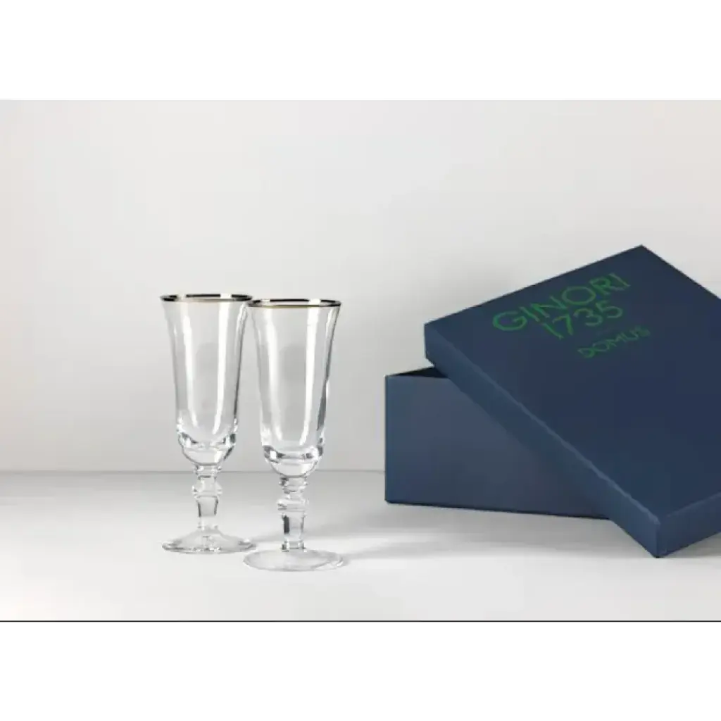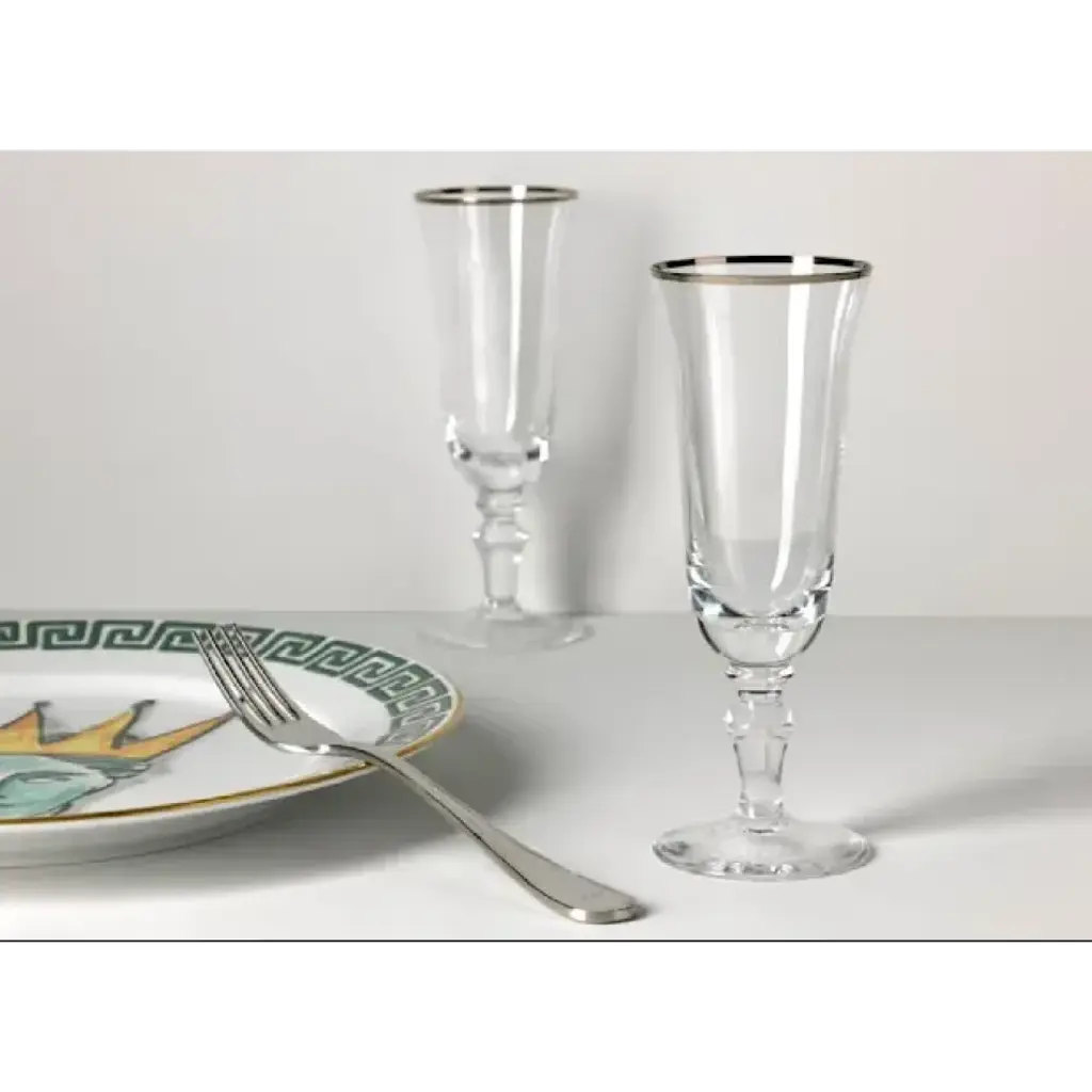 Medici Filo Platino Set For 2 Pc Flute Goblet Cc 150 Oz 5 H Cm 17.5 In.