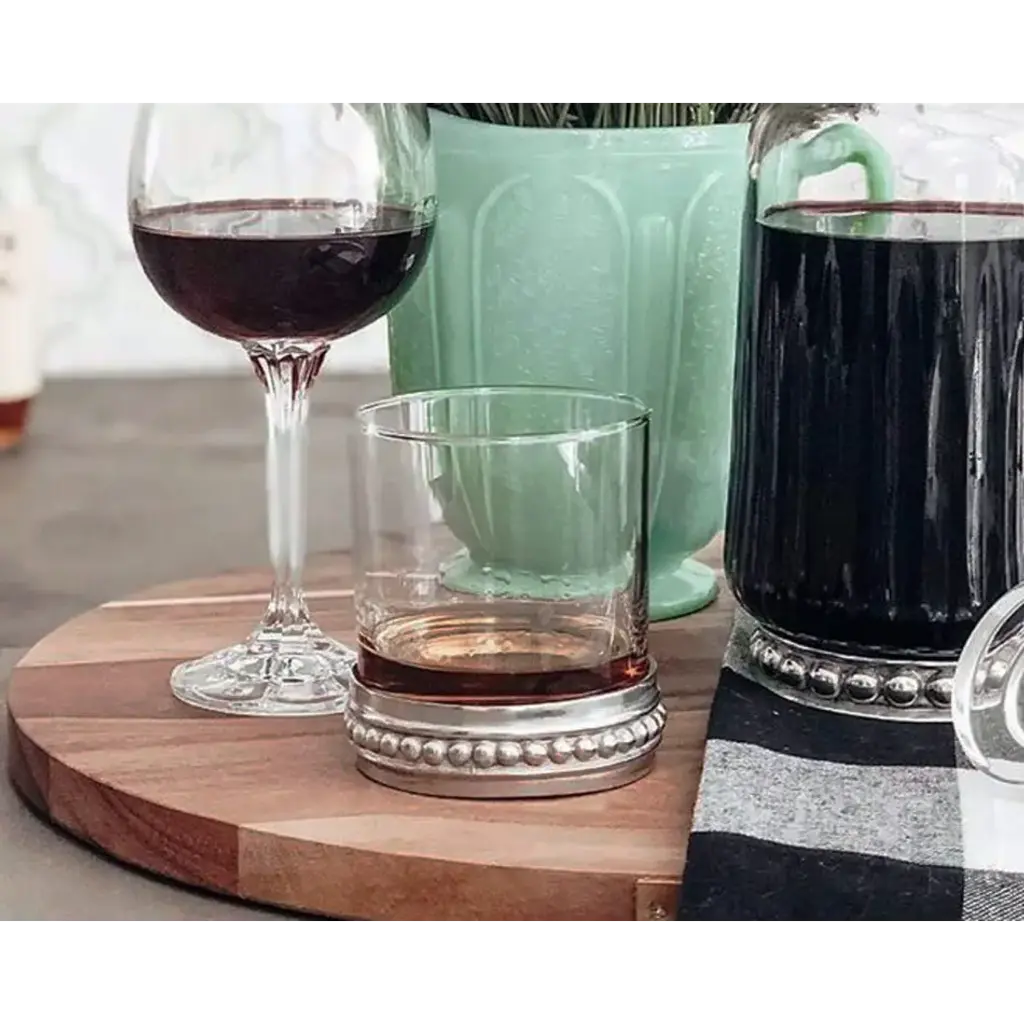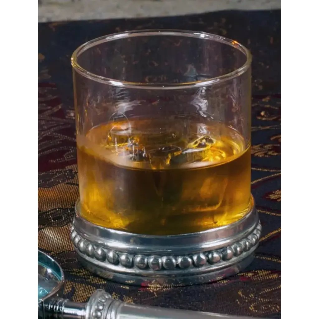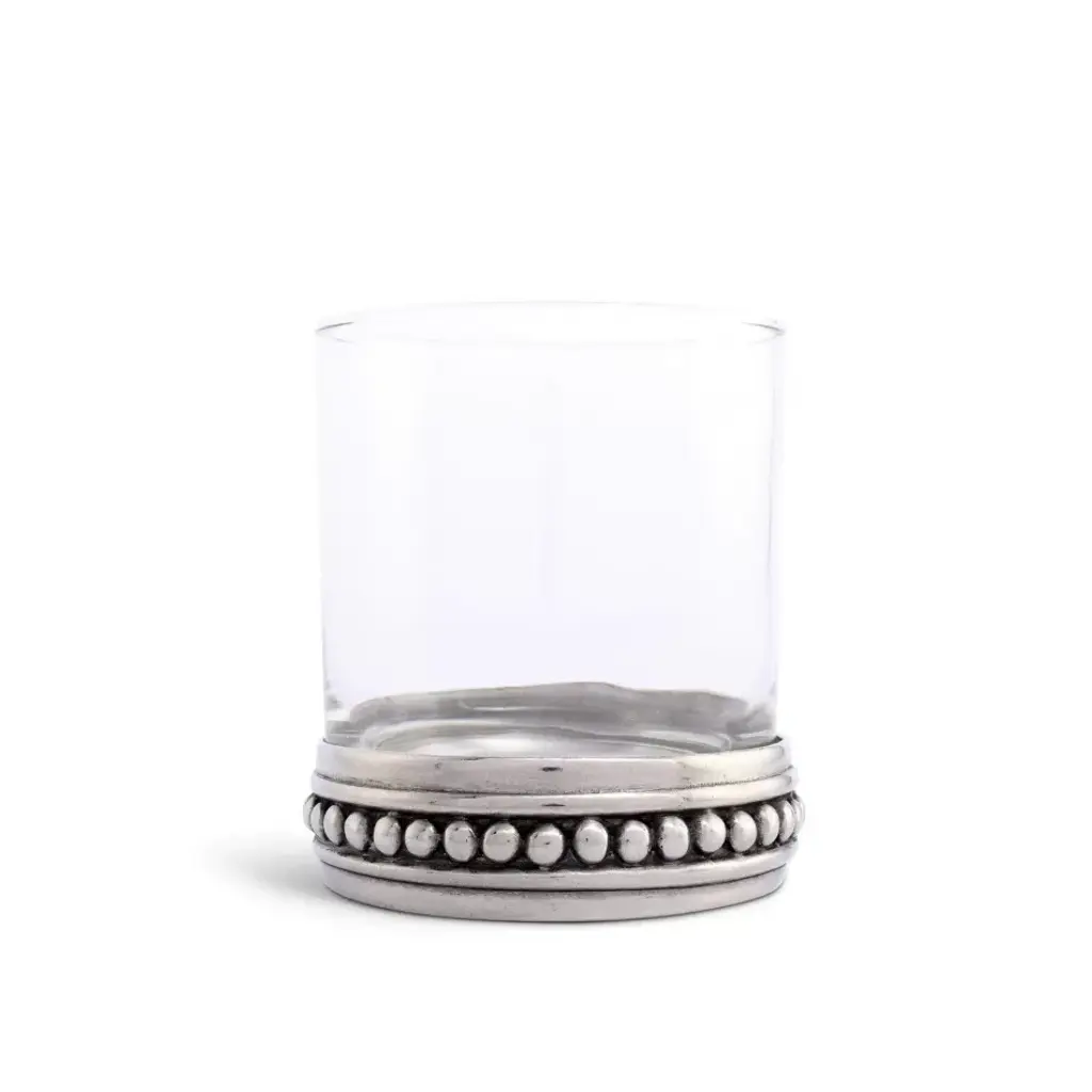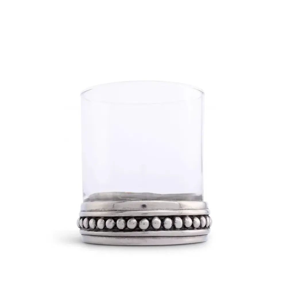 Our Medici Low Ball Glass is crafted from elegant clear glass nestled in a ring base of beaded pewter. These unique glasses are a declaration of modernized renaissance style. Spare and elegant, the pewter base adds a whisper of ornate Vagabond House is a family-owned American company specializing in fine pewter tableware, servingware and giftware. Largely inspired by nature, their exclusive products are designed to be unique, functional heirlooms for those who seek to express tradition and style in both family and formal entertaining.