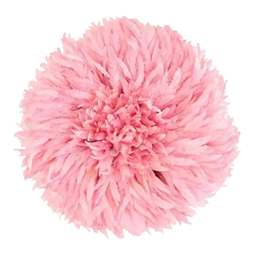 Origin: CameroonDimension: 26-28 inches/66-71 cm diameter.Profile dimension from wall surface (when open and suspend): approx. 4-5 inches (10 -13 cm).Colors may differ slightly from photos due to different monitor settings. Also, the color may vary from one product to another due to the dye on feathers.Materials: Raffia wood, Hens feathers, fabric, plastic string, dyes for color.Imported. All Juju Hats have been fumigated before importation.Maintenance: Juju Hats need some love too. To maintain a beautiful Juju a little maintenance is necessary. Spray the feathers every 3 to 4 months with an anti-moth to prevent from any damages caused by insects. To remove the dust on the Juju, use a hair blow dryer on low temperature. Keep blow dryer at least 12 inches (or 30 cm) away from the feathers. If needed rearrange the feathers with your fingers.This artful Juju Hat, the Tyn Hat was handcrafted in Cameroon. For centuries, Bamil tribes have been making those hats that symbolize prosperity and freedom. Once, Juju Hats were worn by medicine men and royalties during tribal ceremonies. Nowadays, their customs are less restricted during Bamil traditional rituals and their beauty has reached homes beyond Cameroon, borders. Those headdresses are very impressive hung on walls. Juju hats are made from natural or dyed feathers and woven raffia. Artisans take 2 to 3 days to complete one hat.