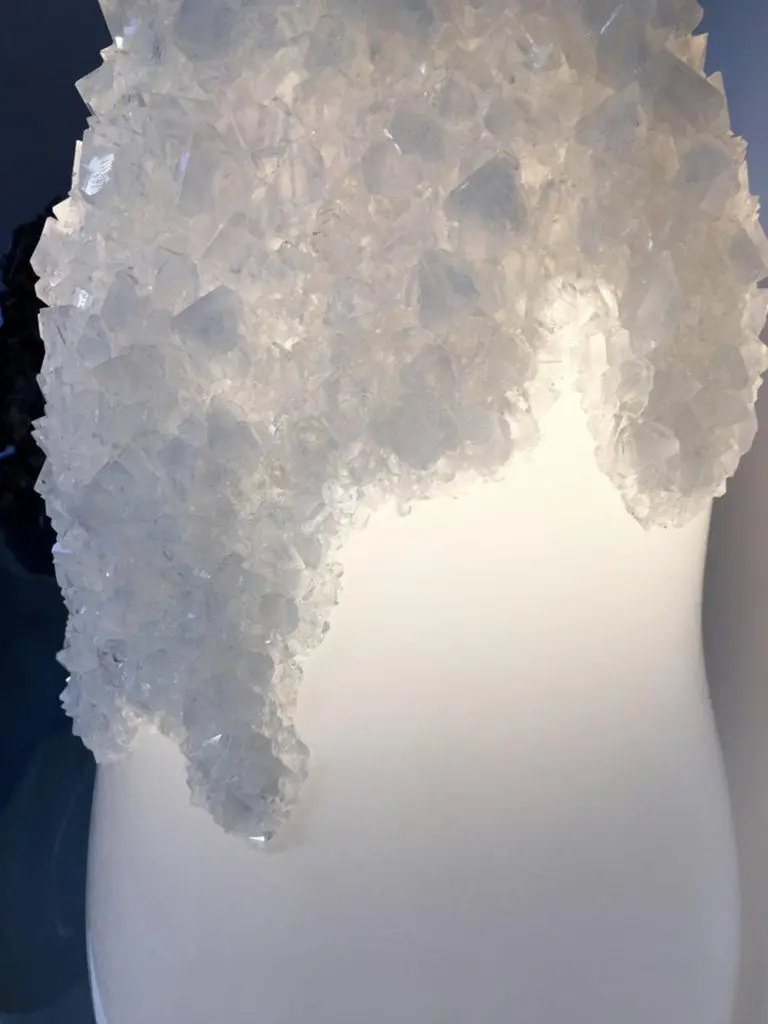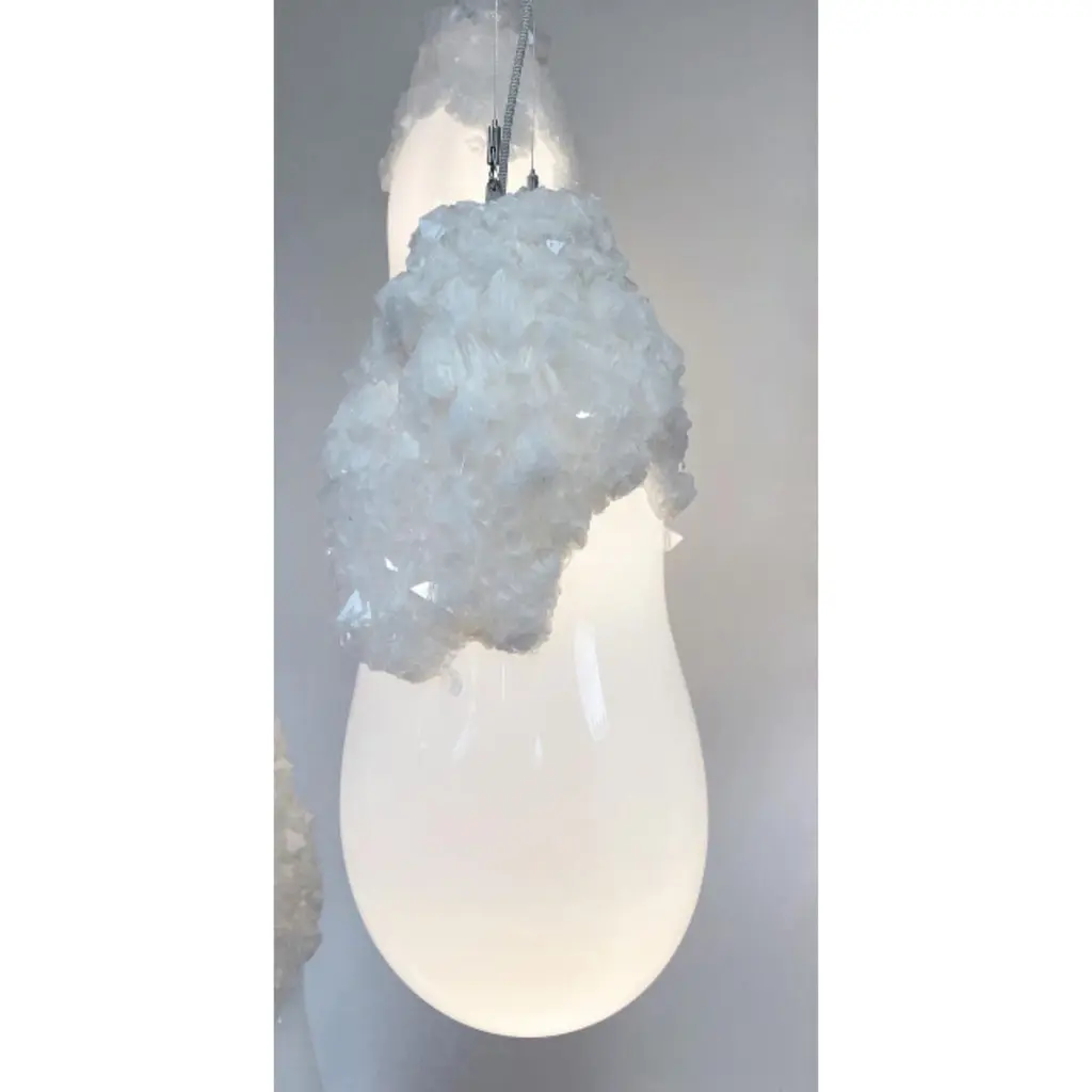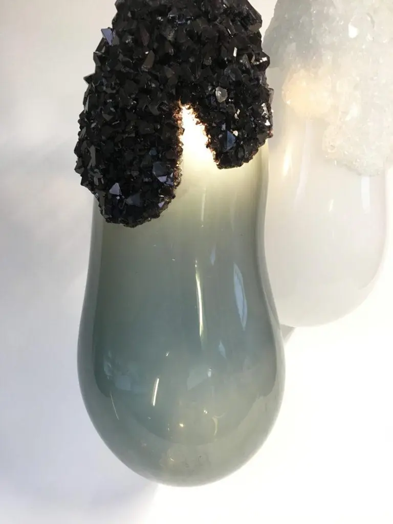 Medium overgrown bubbles by Mark Sturkenboom and Alex de WitteDimensions: D 28 x H 70 cmMaterial: Mouthblown glass, natural grown crystal, dimmable led, Color White or grey blackCeiling ornaments can be produced in crystal to extend the Overgrown installation.Exact precise dimensions are not guaranteed, width is always different but generally can only reach 25-40% of the height. Please contact us.For this collection Sturkenboom worked closely together with the glass blowers and glass cutting artisans from the GlassFactory in Boda, Sweden.Mark Sturkenboom (Driebergen, 1983) is an artist that graduated with honors in 2012 at Artez Academy for the Arts in Arnhem/Netherlands. Since 2012 he works as a conceptual product designer/artist in his atelier in Utrecht.His work balances between art and design, he stretches the boundaries between art and design. He offers new viewpoints and rituals to deal with life.‘My focus lies not on the appearance of things, but on what I call the deeper layers in the relation between an object and its owner. ‘I try to call forward a myriad of associations and stimulate our thinking about what counts to us in our lives.I examine the meaning of objects and products and set them free from their conventional and initial use.’Sturkenboom reinterpretates products that are often intertwined with the themes love, time or has an inclination with a collective value perception.Engaging his work, you probably will need to start making ‘moral’ decisions. For instance his Ark, table clock, urn or vase are not just functional or only good looking.In their presence and while handling them they invite you to think about time, love passed or the possibility to free yourself from the burden of your possessions by destroying them.His work is exhibited and part of private collections worldwide, from New York to Shanghai, from Tokio to Amsterdam.